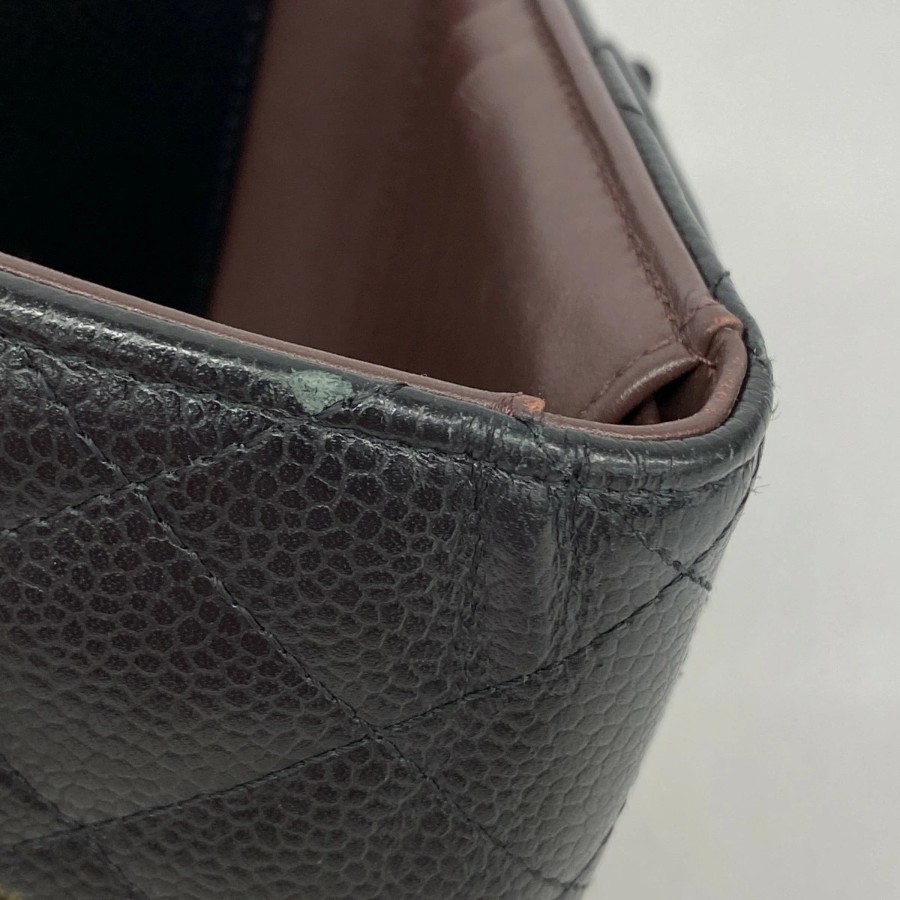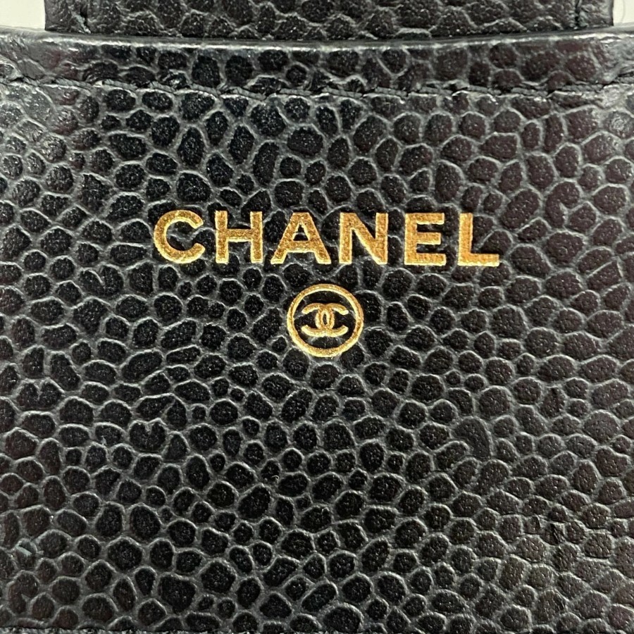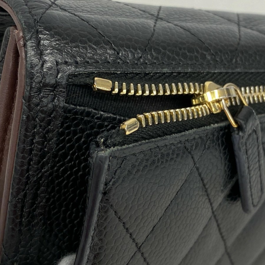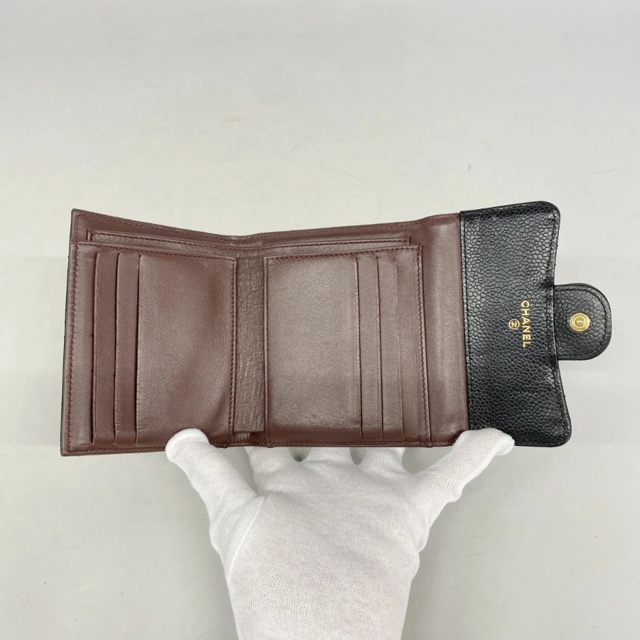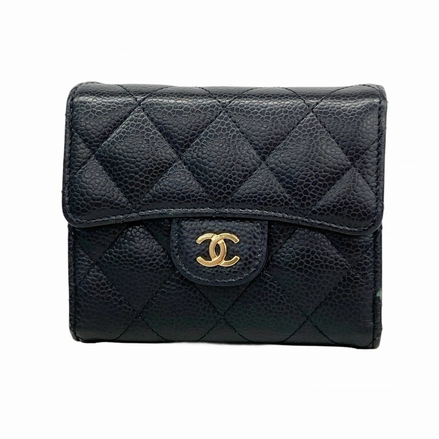 【6dd5494】シャネル 三つ折り財布 マトラッセ キャビアスキン ブラック ゴールド金具【中古】レディース