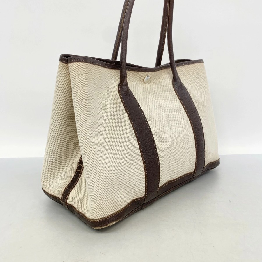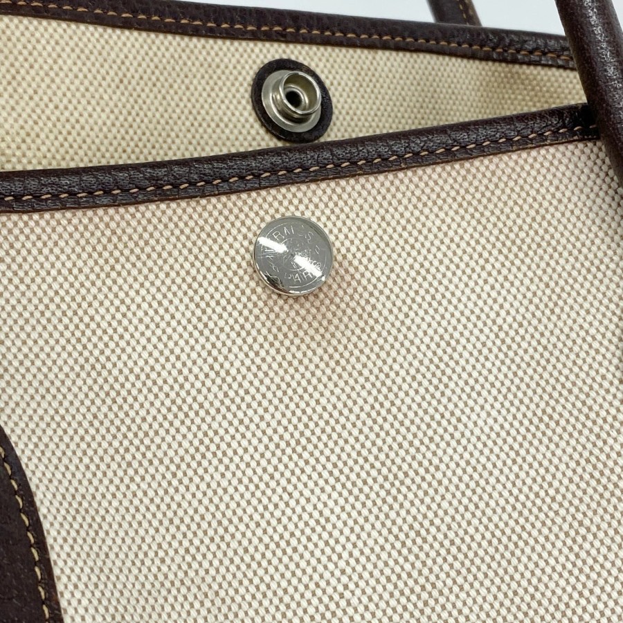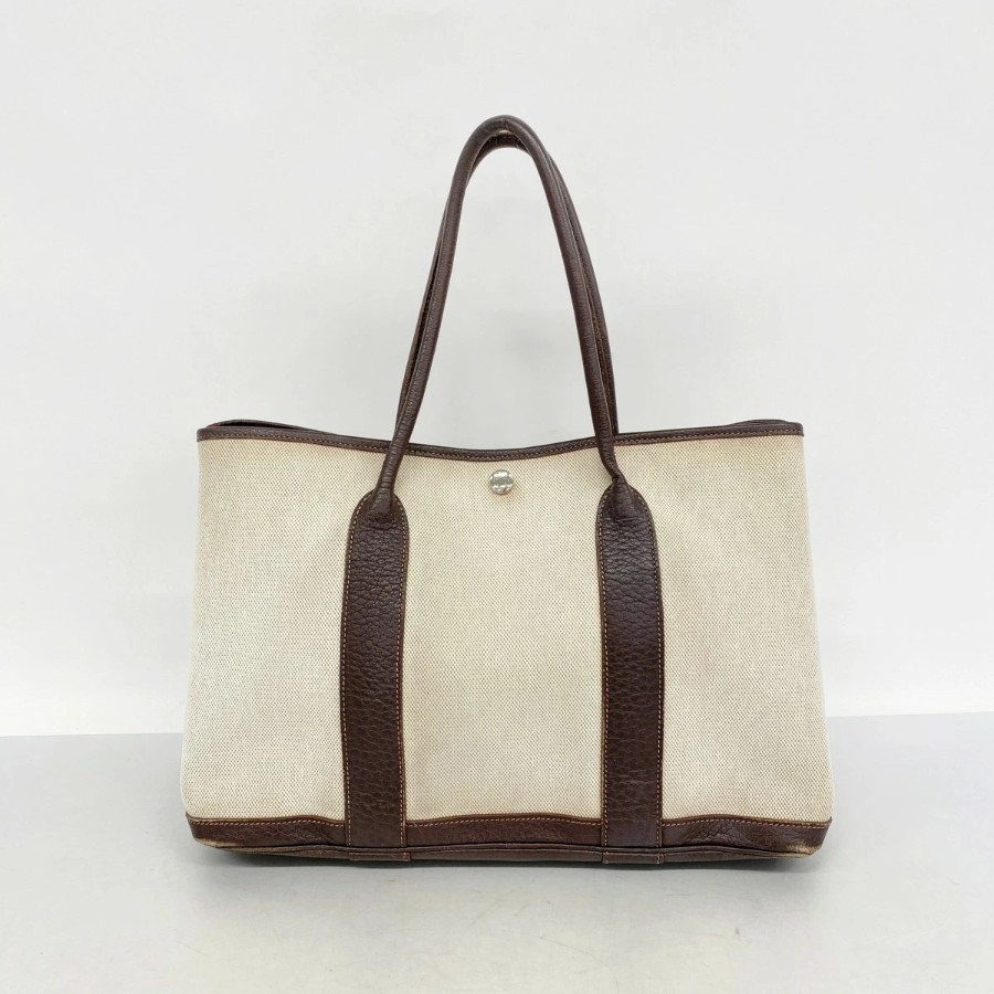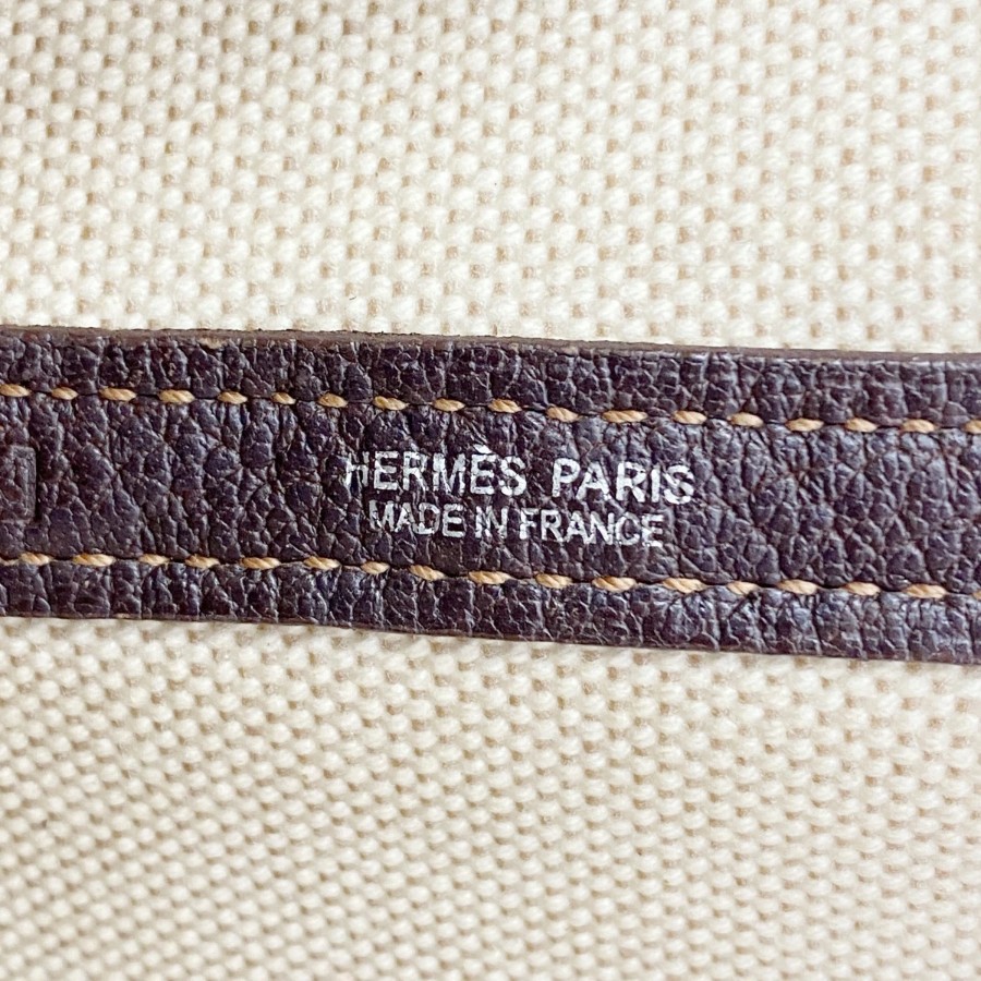 【6de5530-h】エルメス トートバッグ ガーデンパーティPM トワルアッシュ ブラウン シルバー金具 □K刻印【中古】レディース