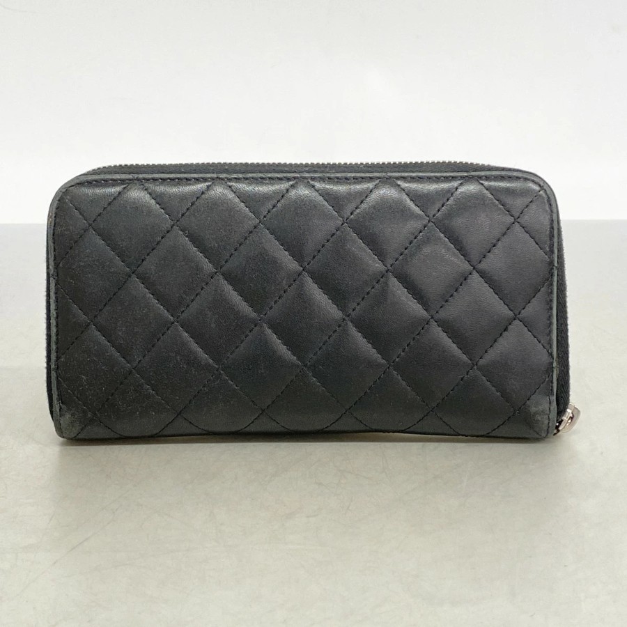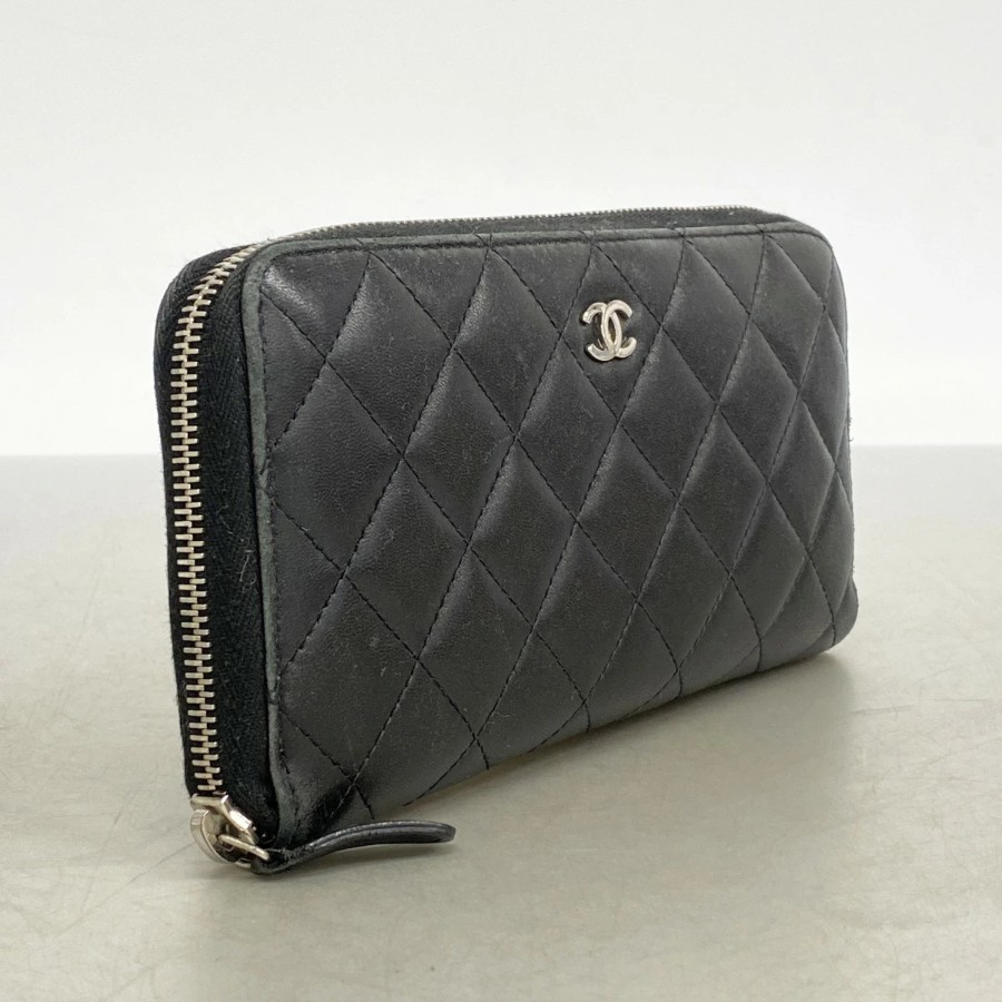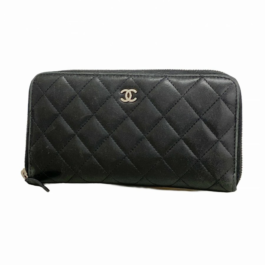 【6de5776-k】シャネル 長財布 マトラッセ ラムスキン ブラック シルバー金具【中古】レディース