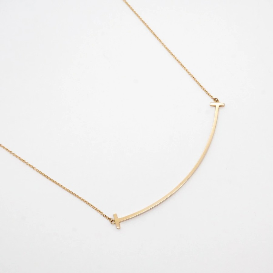 【6jcb0819】Tiffany & Co. Necklace T Smile Large K18PG Pink Gold【Used】Women's