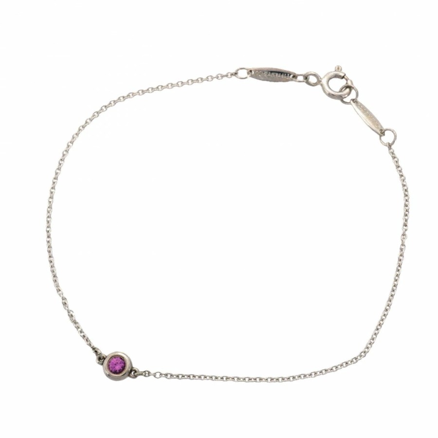 【6jcb0821-k】Tiffany & Co. By the Yard Bracelet, Sterling Silver 925, Pink Sapphire [Pre-owned] Women's