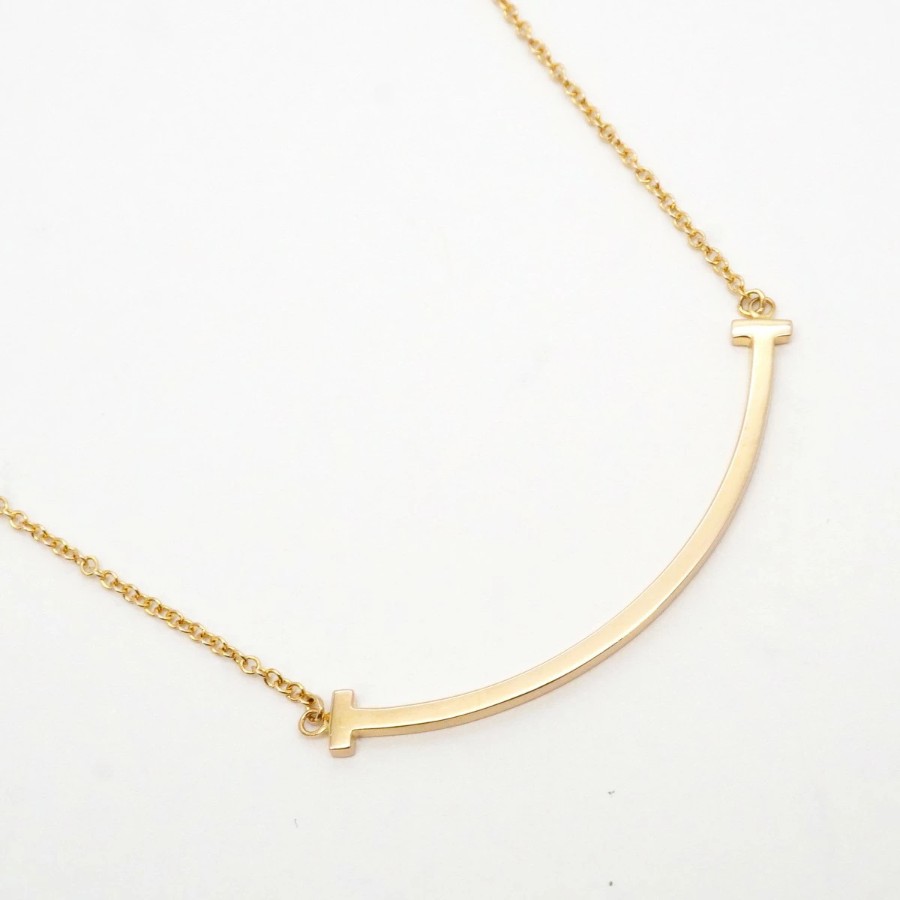 【6jcb0926】ティファニー ネックレス Tスマイル スモール K18PG ピンクゴールド【中古】レディース