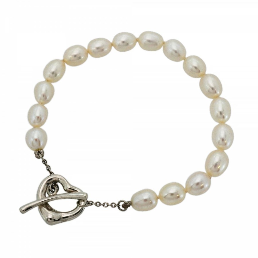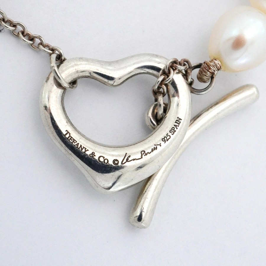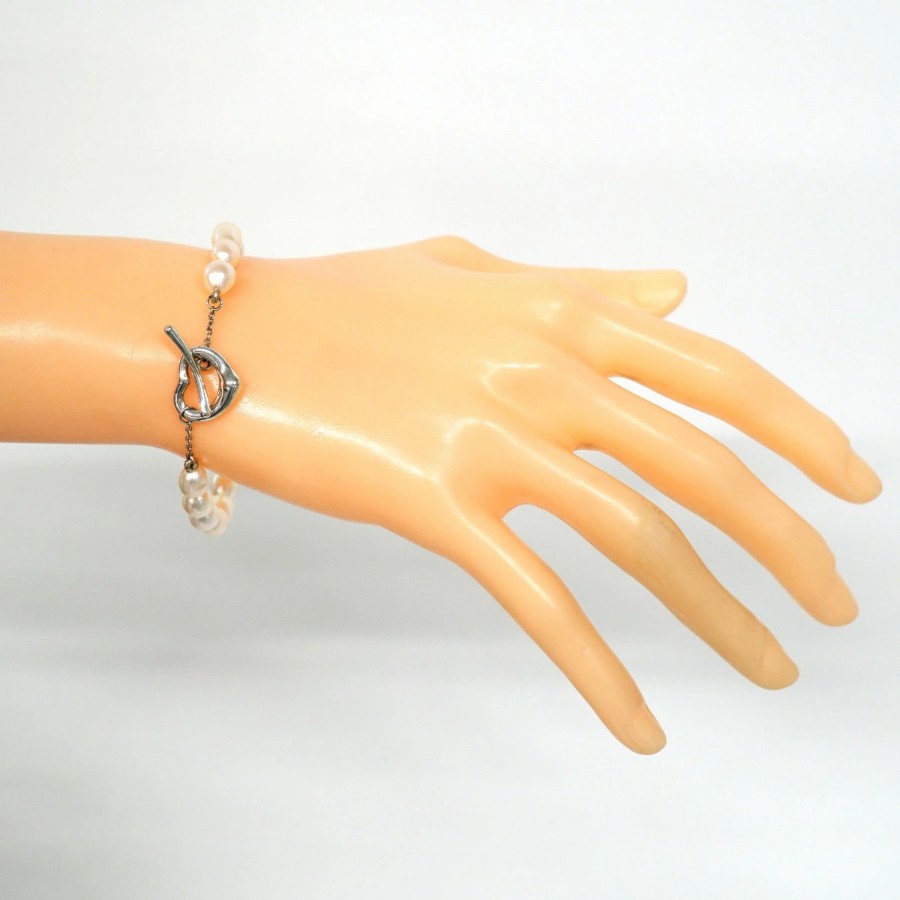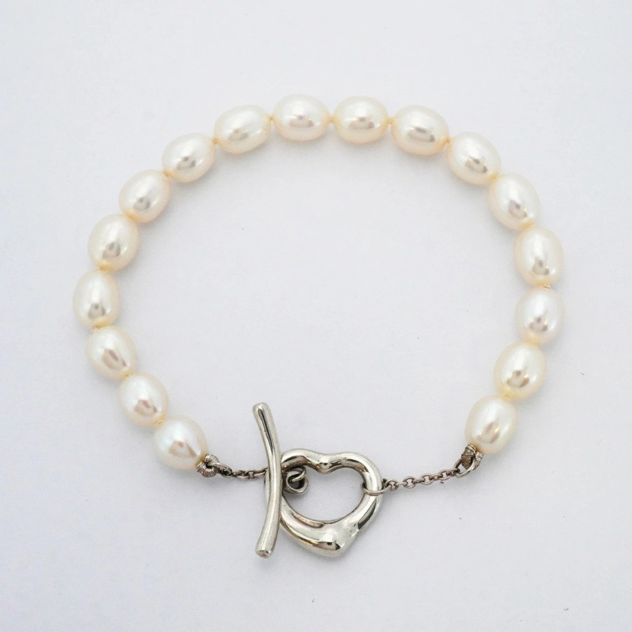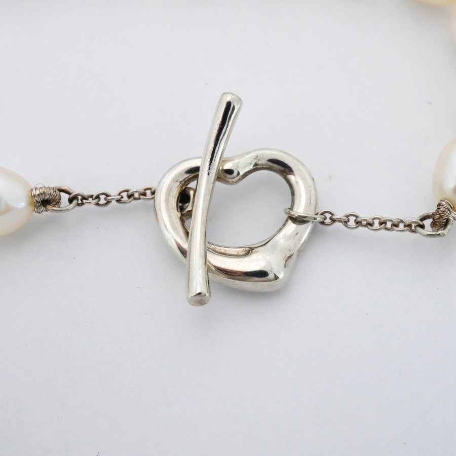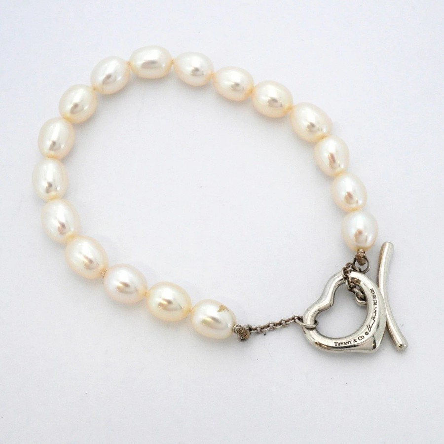 【6jcb0954-k】ティファニー ブレスレット オープンハート シルバー925 パール【中古】レディース