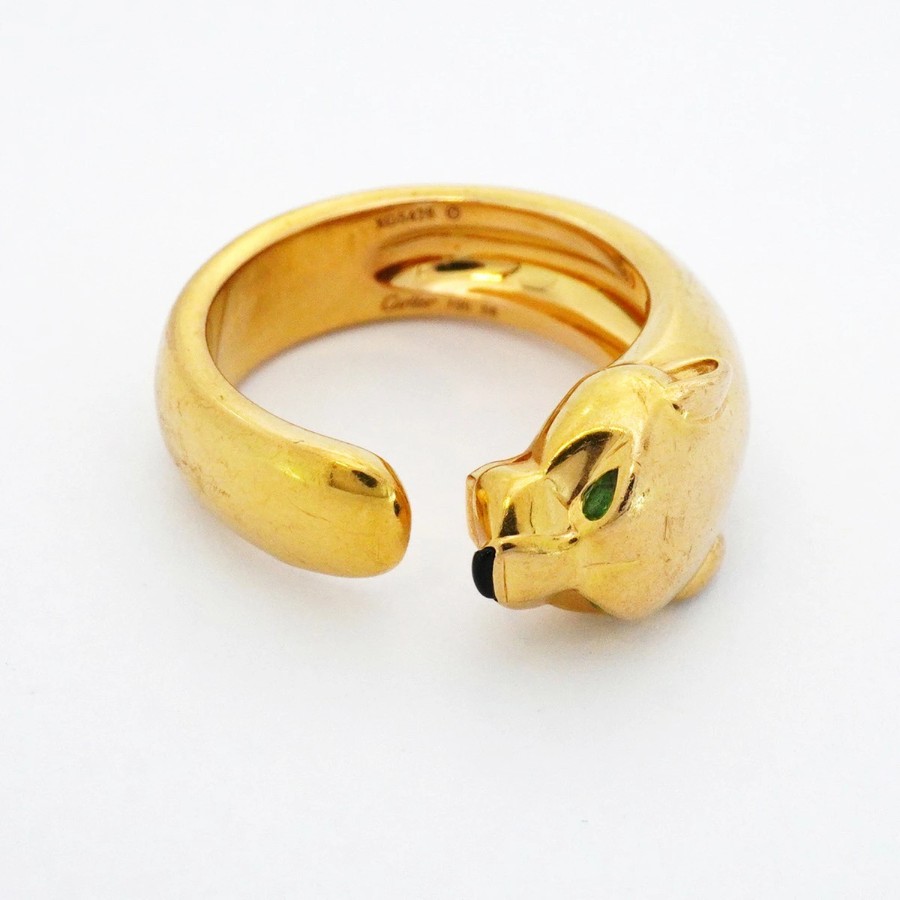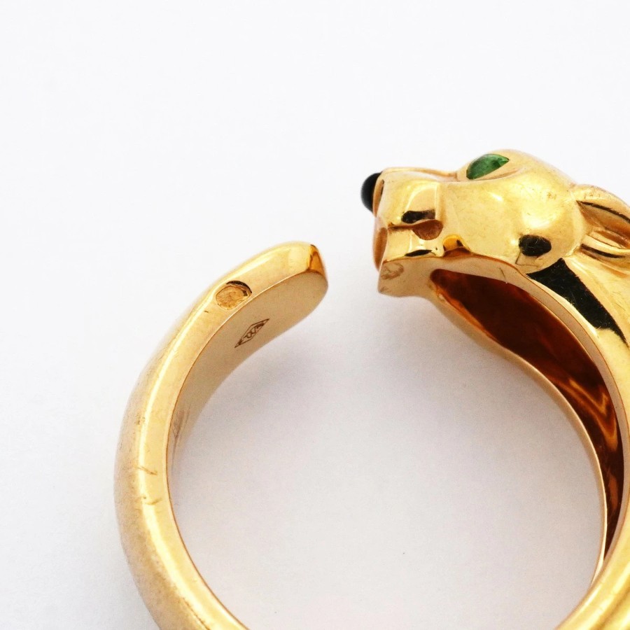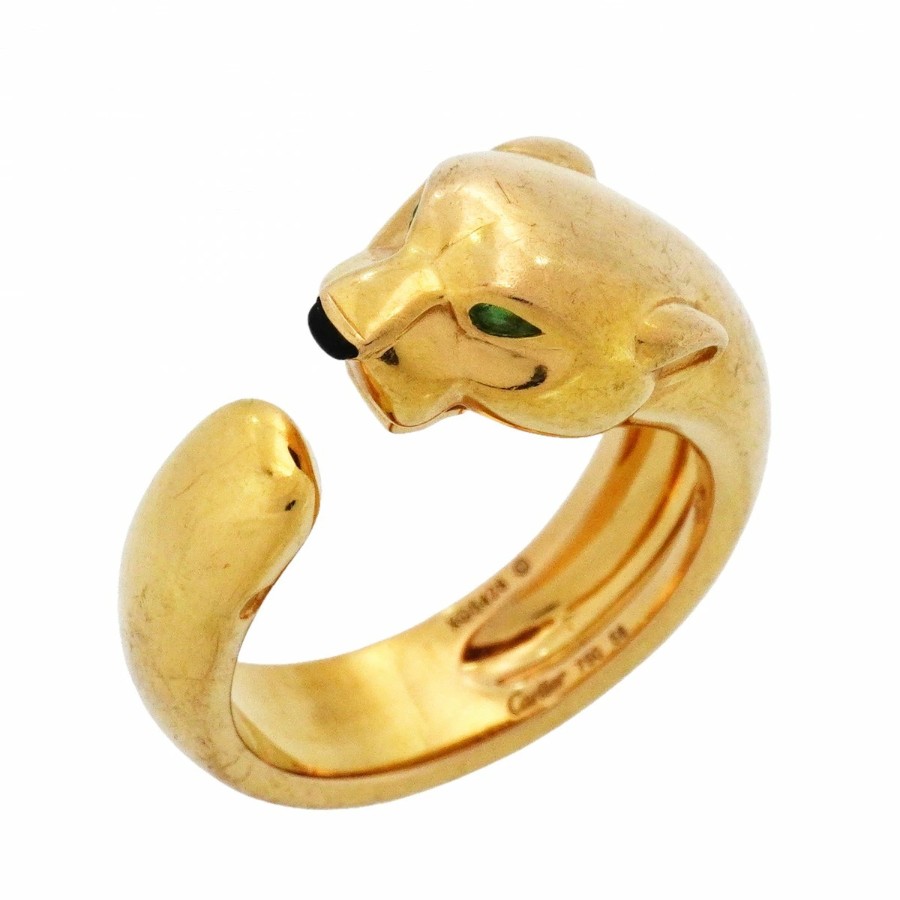 ★SALE【6jcb0976-e】カルティエ リング パンテール K18YG イエローゴールド オニキス グリーンガーネット ブラック #58【中古】メンズ