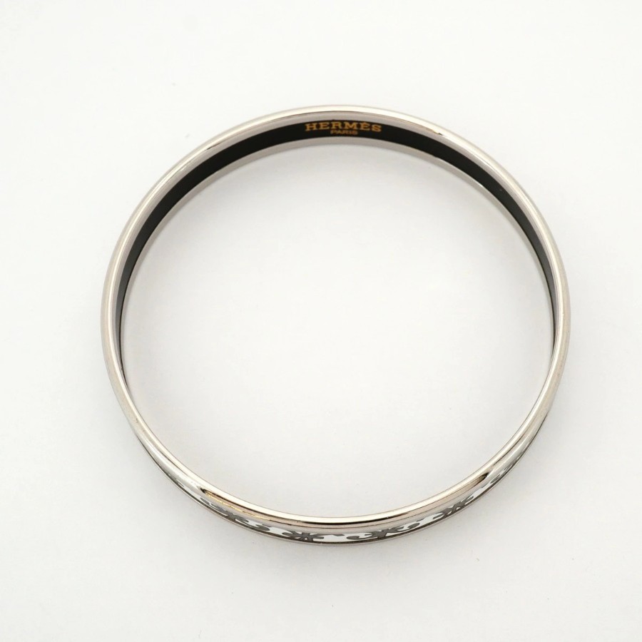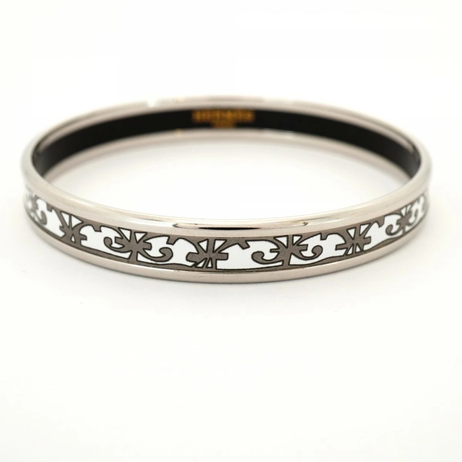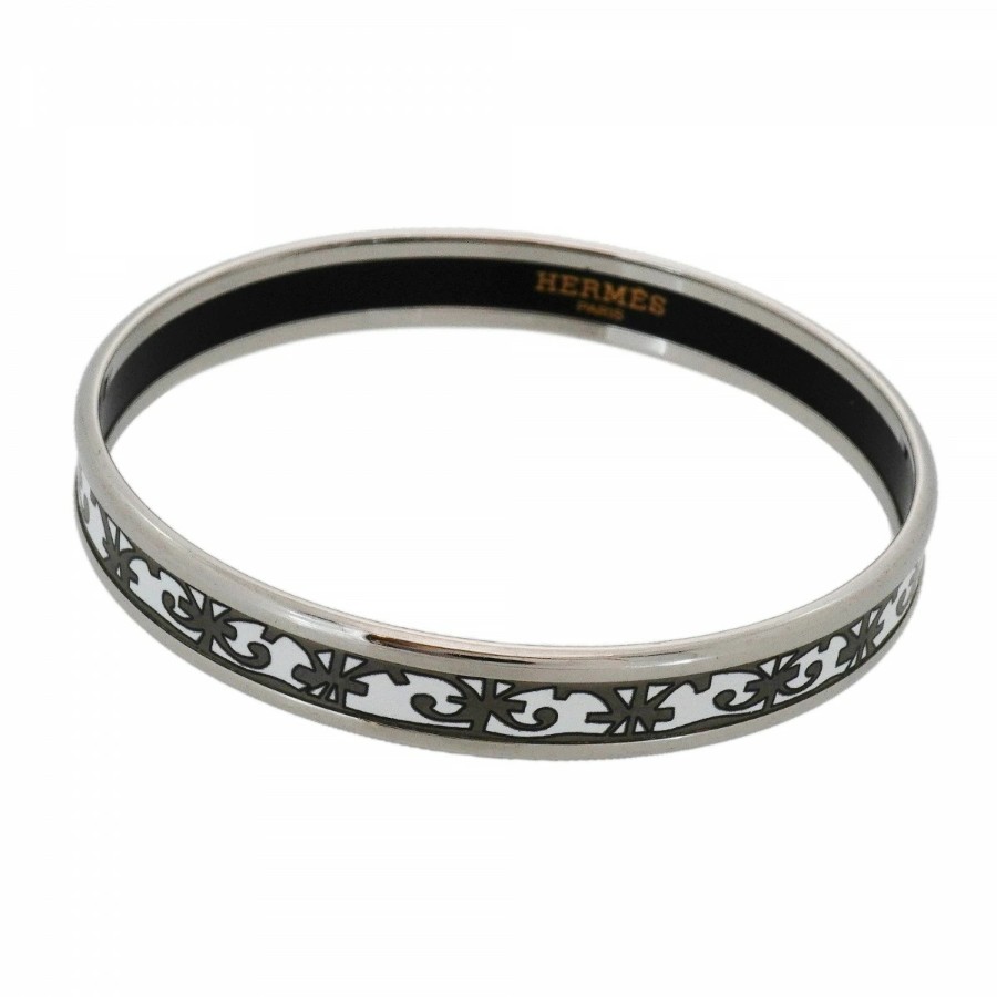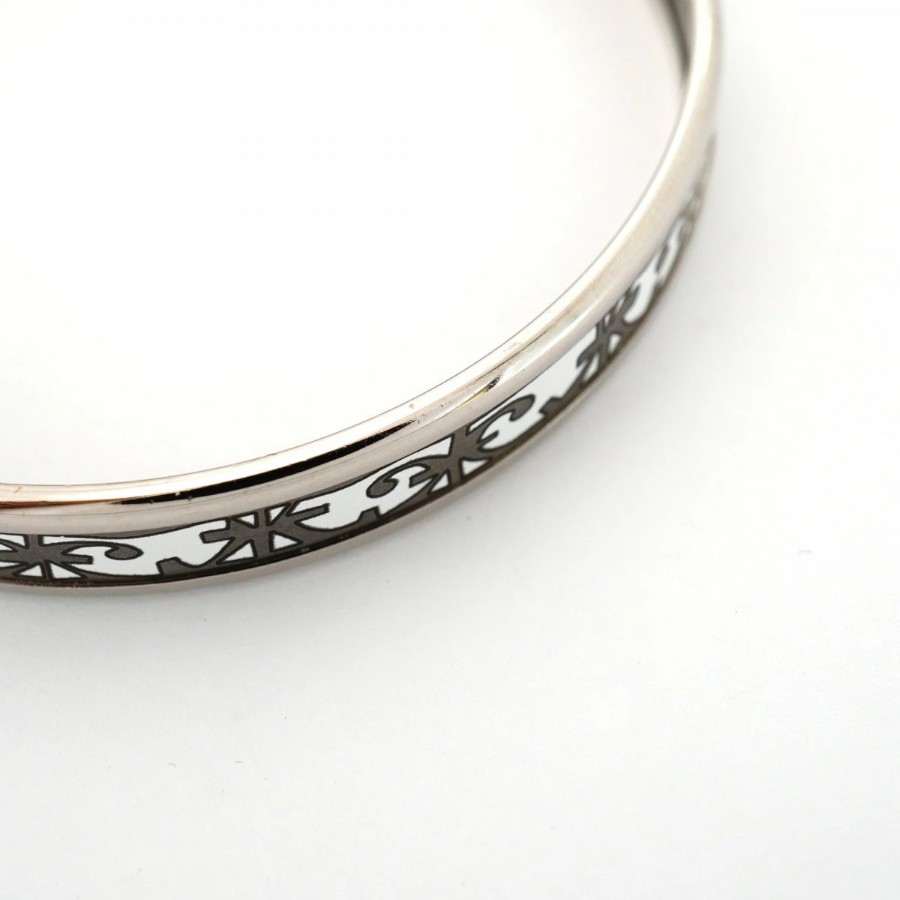 【6jdb0256】エルメス バングル エマイユPM メタル シルバー ホワイト【中古】レディース