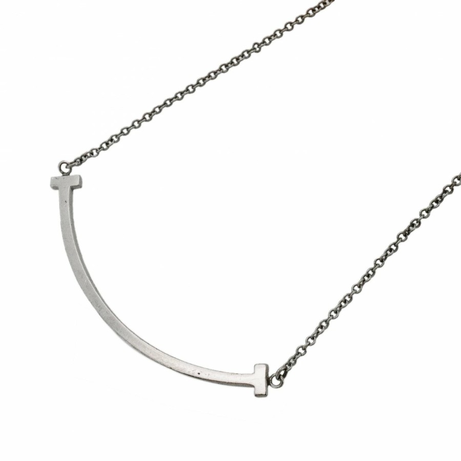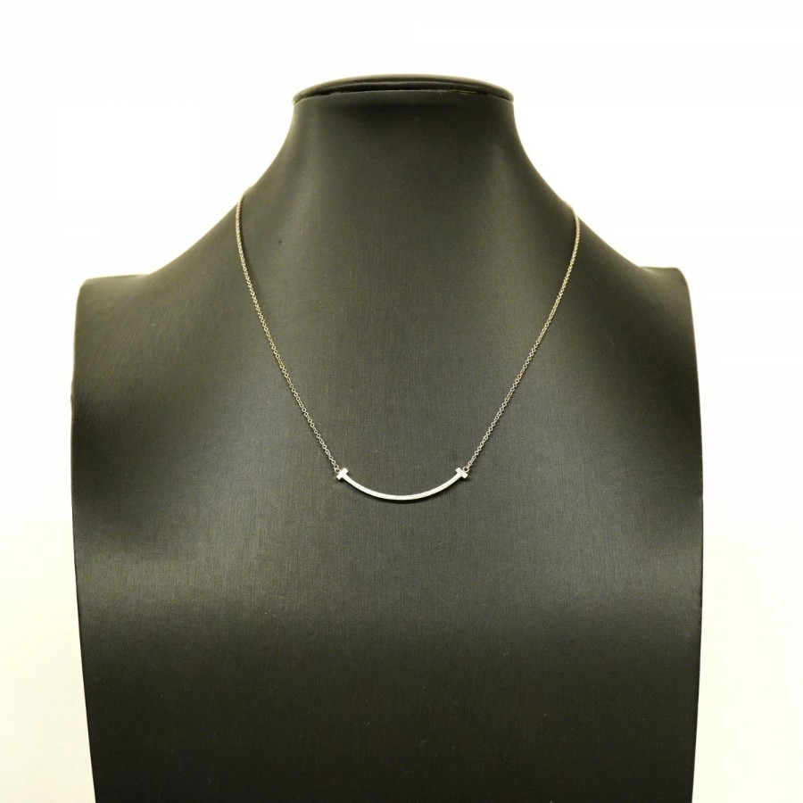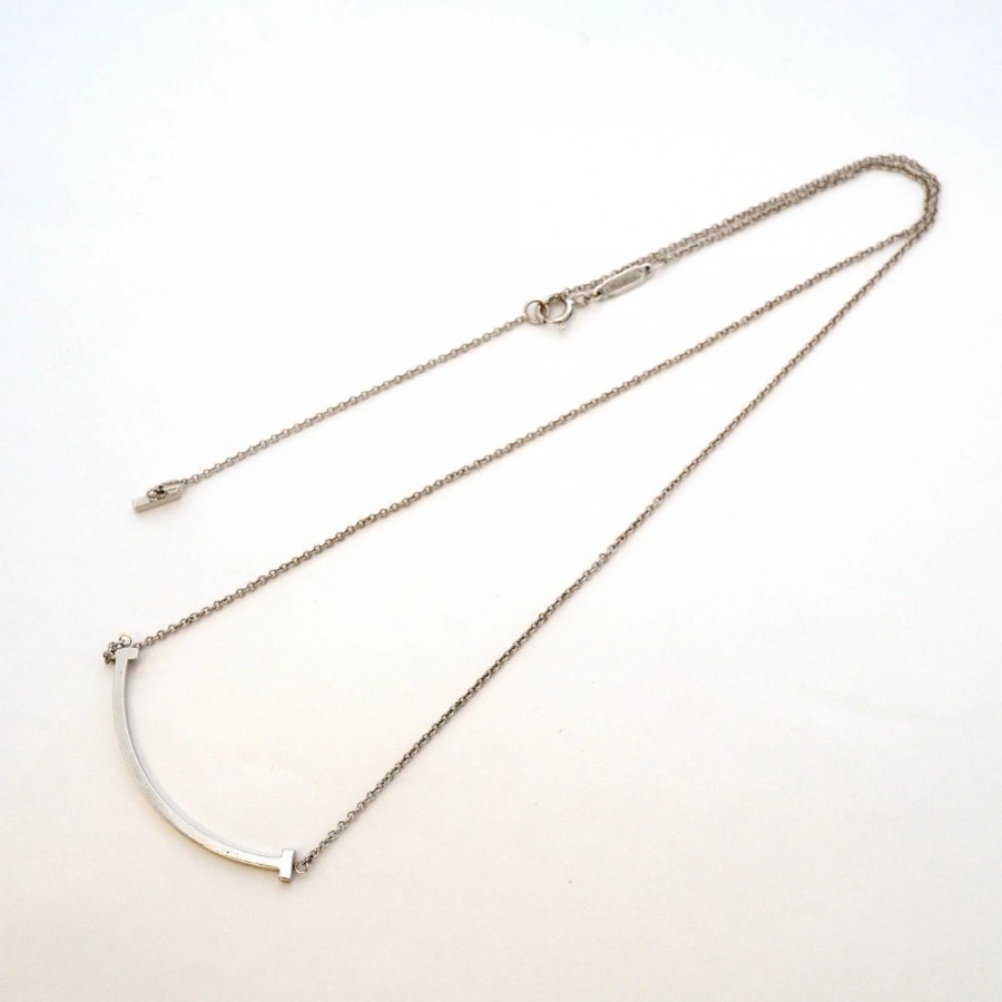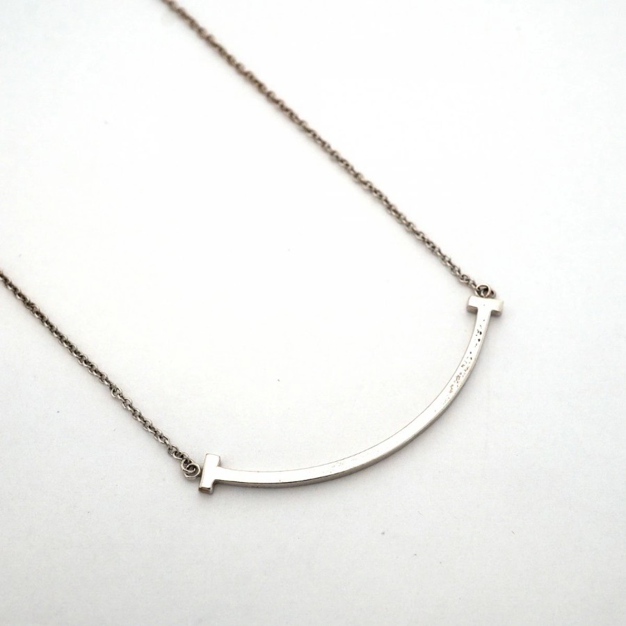 【6jdb0263】ティファニー ネックレス Tスマイル スモール K18WG ホワイトゴールド【中古】レディース