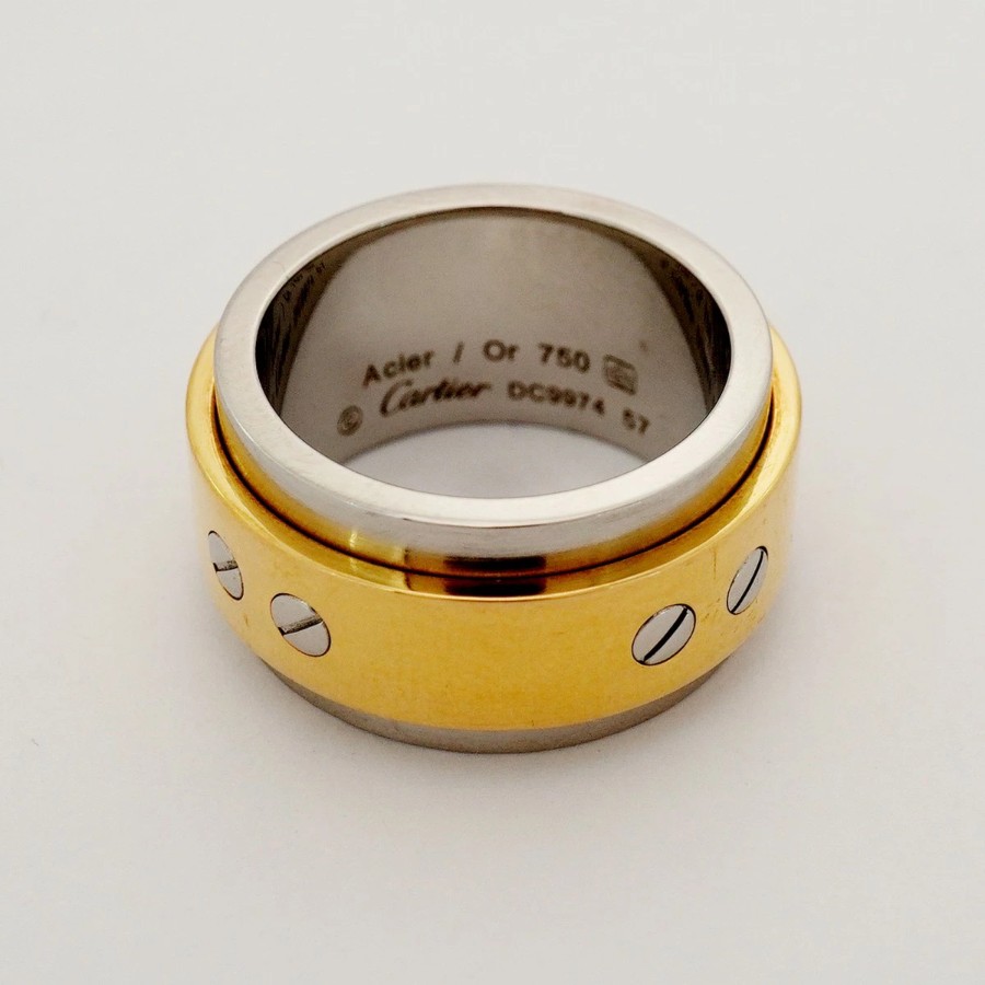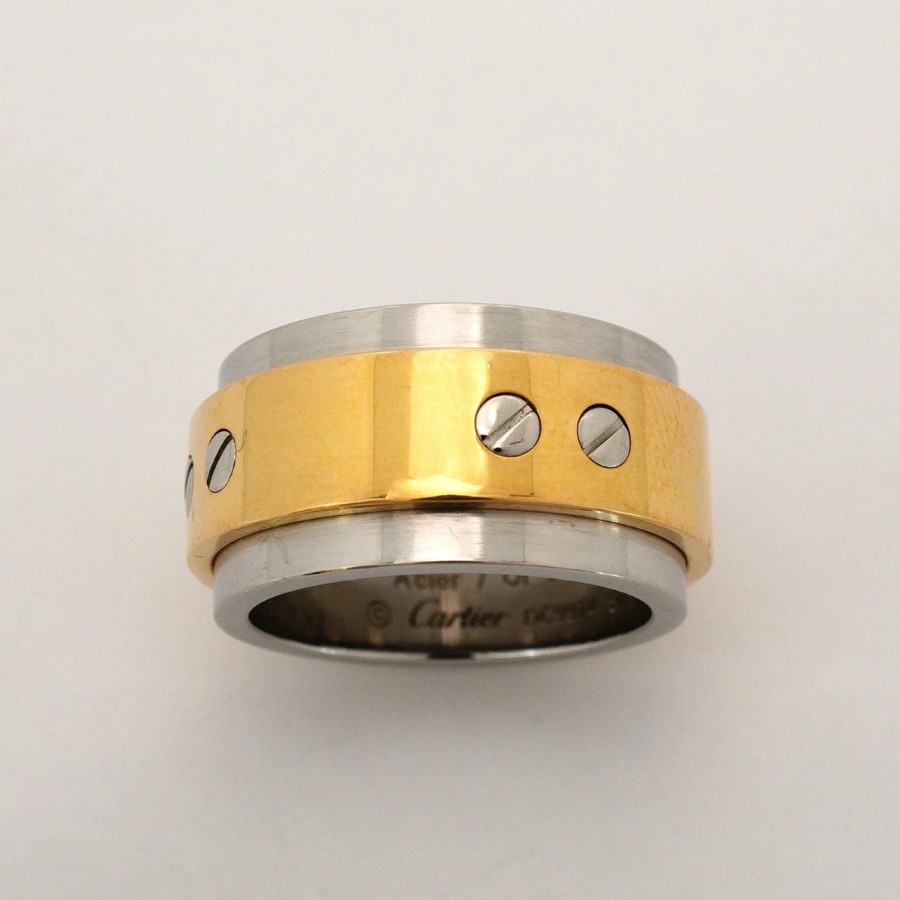 【6jdb0273】カルティエ リング サントス K18YG イエローゴールド ステンレス シルバー #57【中古】メンズ