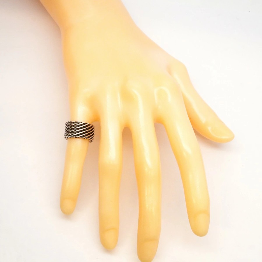 【6jdb0310-k】ティファニー リング サマセット/メッシュ シルバー925 10号【中古】レディース