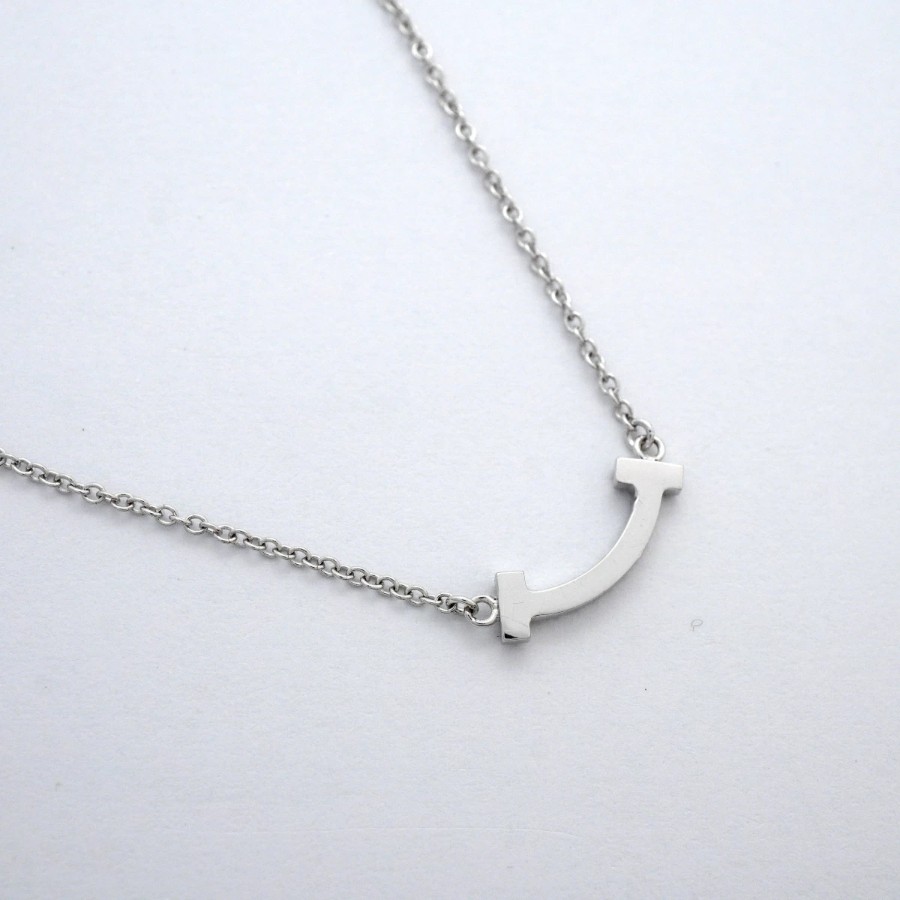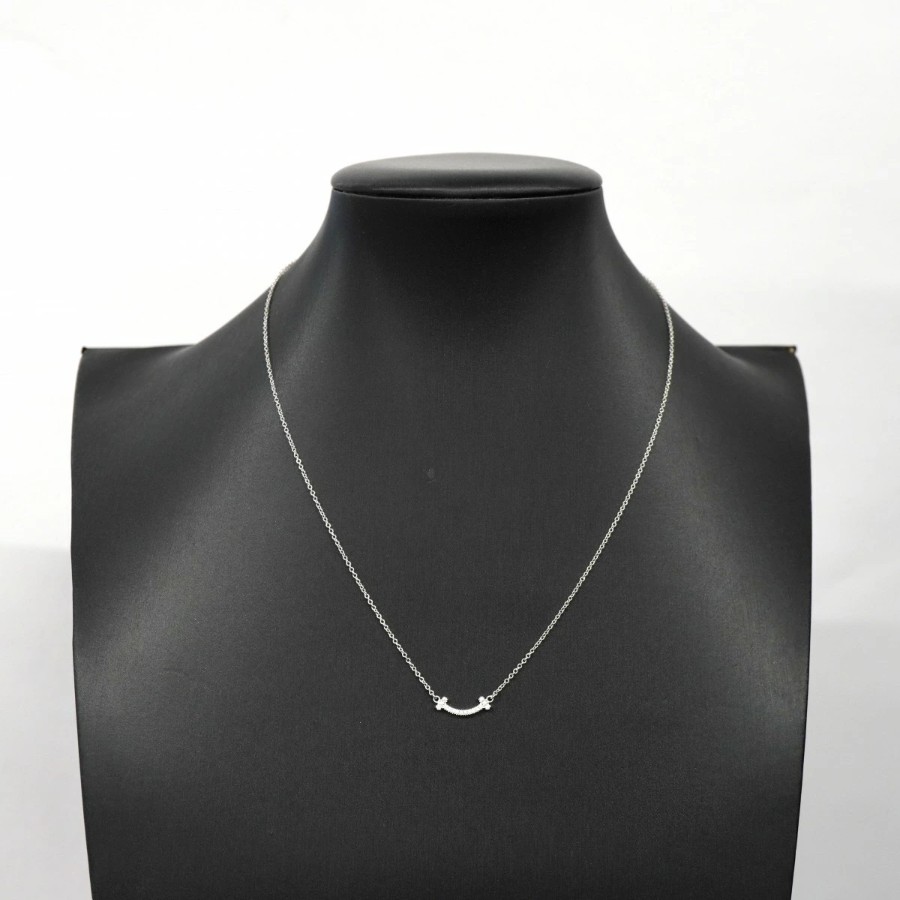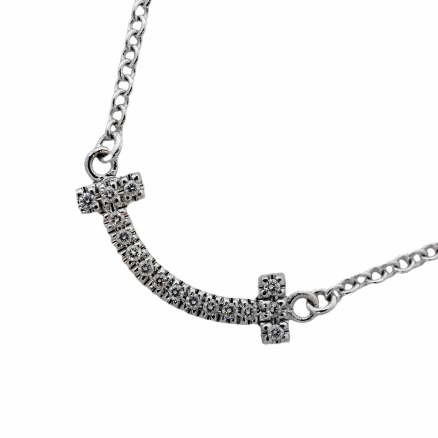 【6jdb0408-43】ティファニー ネックレス Tスマイル ミニ K18WG ホワイトゴールド ダイヤモンド【中古】レディース