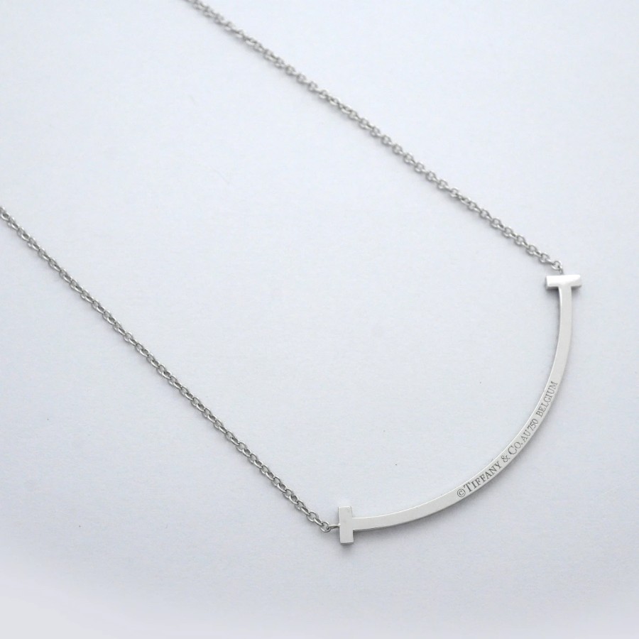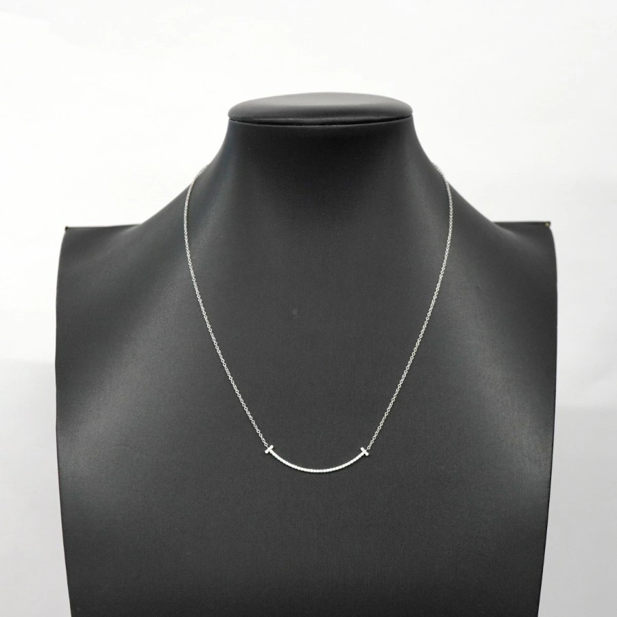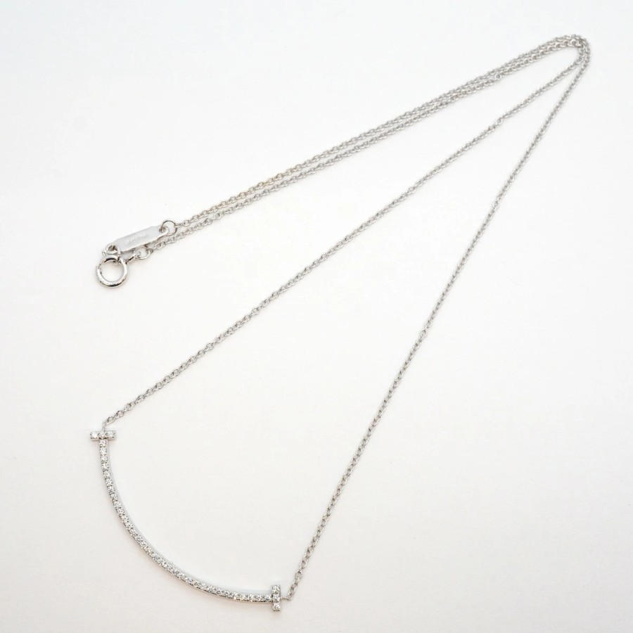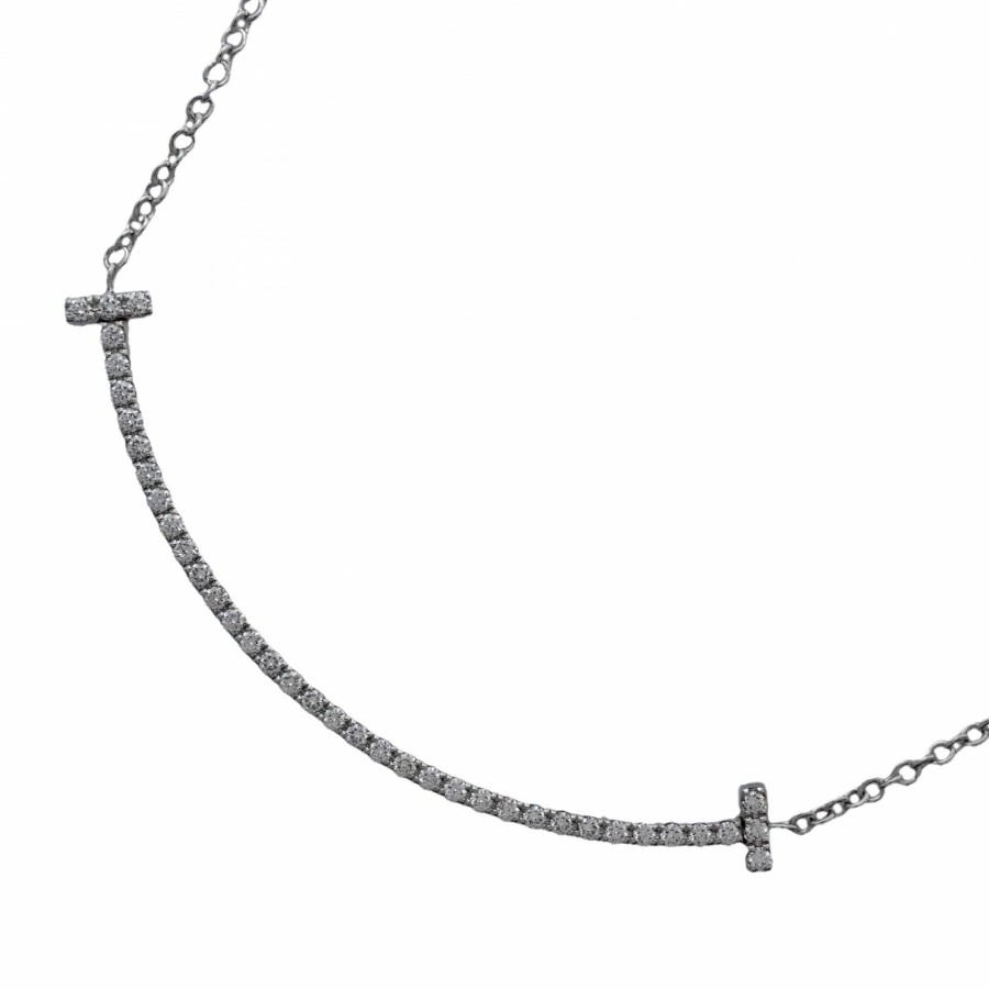 【6jdb0408-44】ティファニー ネックレス Tスマイル スモール K18WG ホワイトゴールド ダイヤモンド【中古】レディース