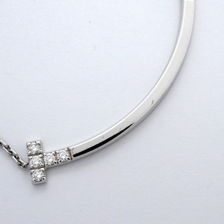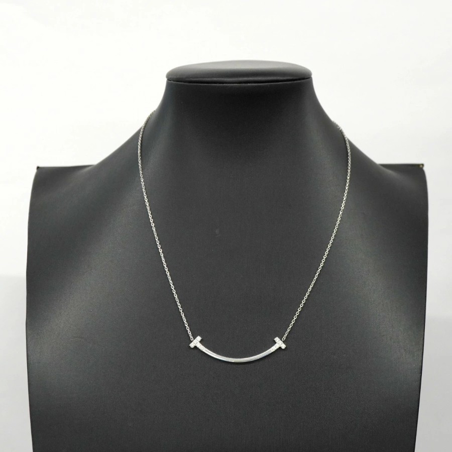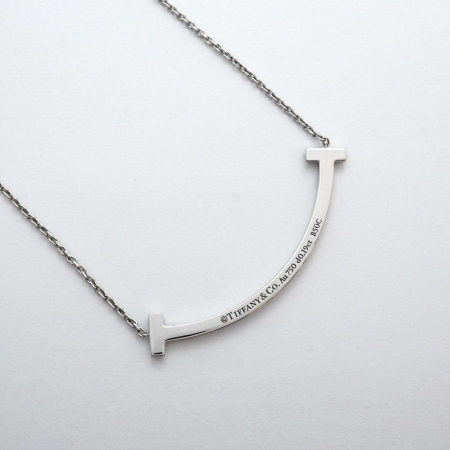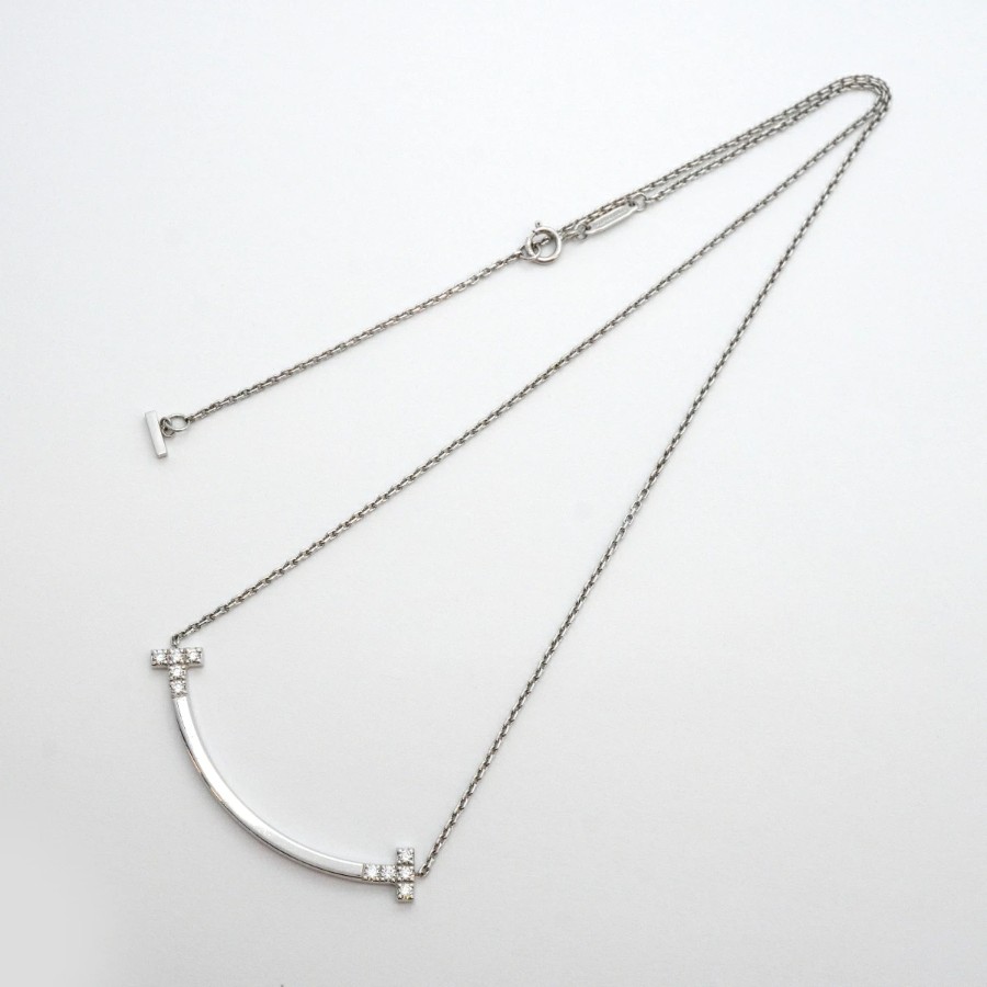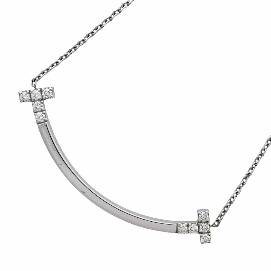 ★SALE【6jdb0408-45】ティファニー ネックレス Tスマイル ミディアム K18WG ホワイトゴールド ダイヤモンド 0.19ct【中古】レディース