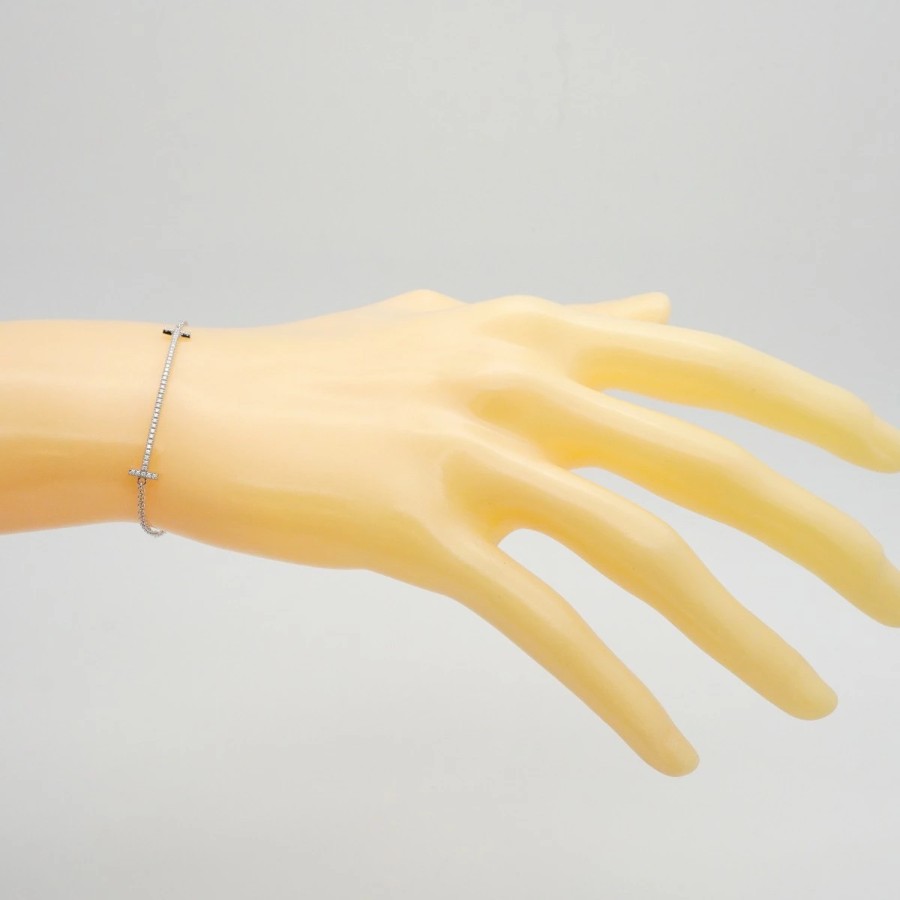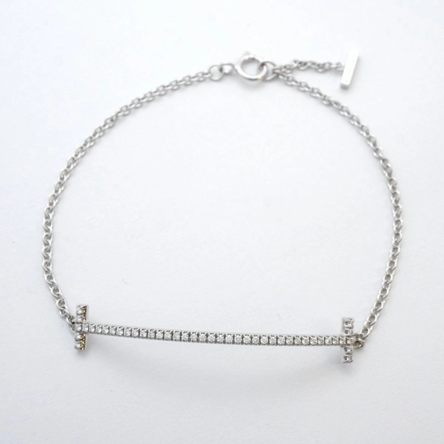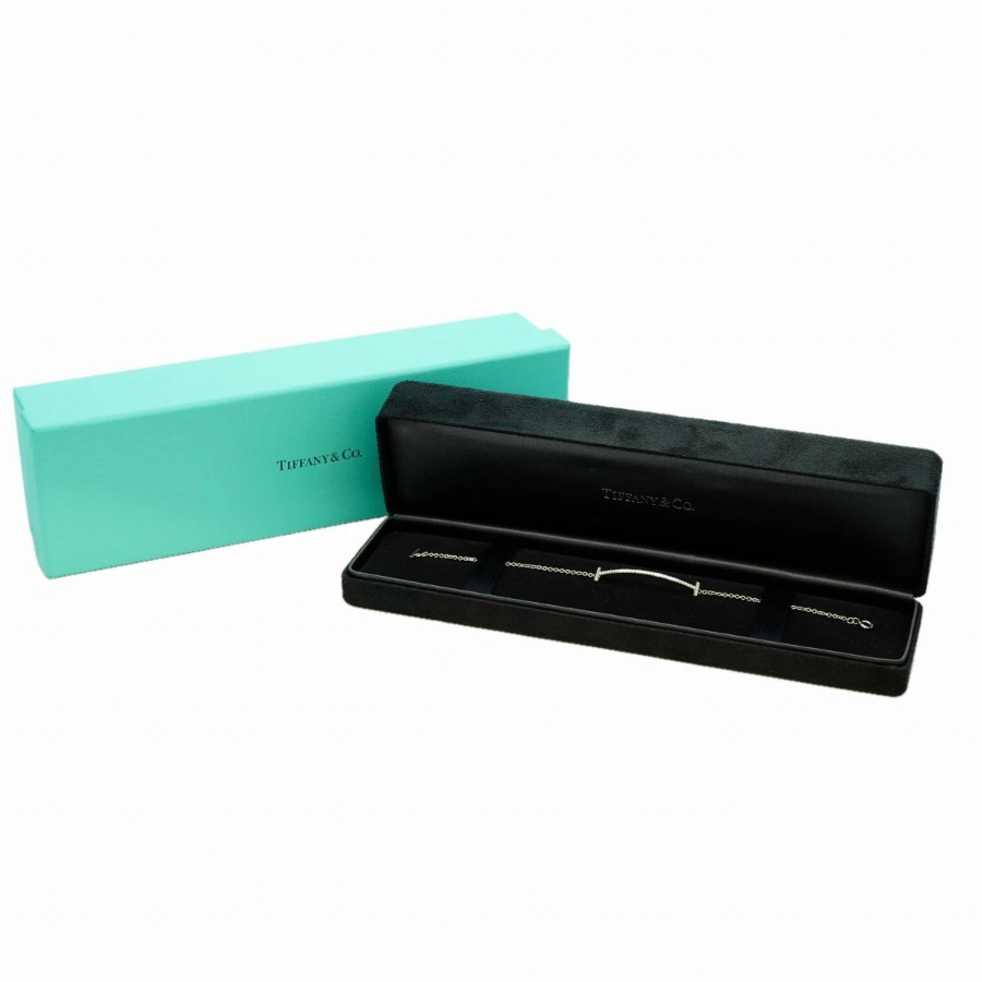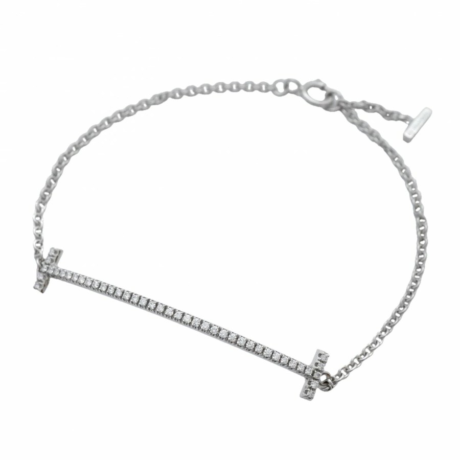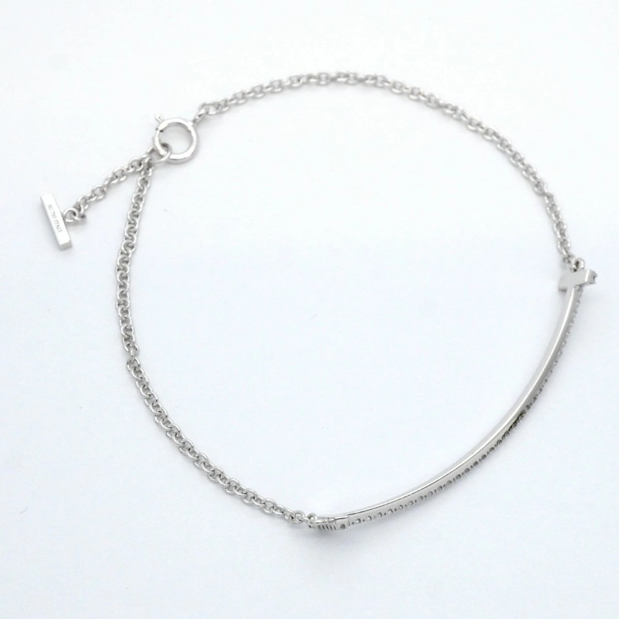 【6jdb0408-47】Tiffany & Co. T Smile Bracelet K18WG White Gold Diamond [Pre-owned] Women's