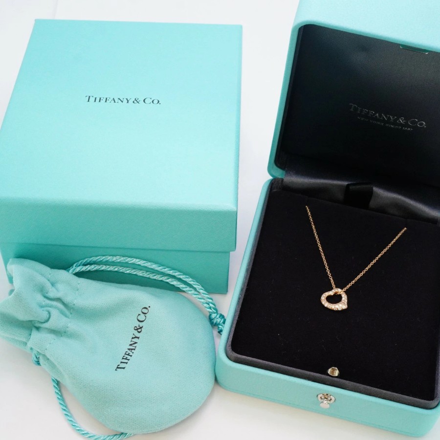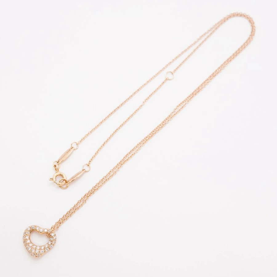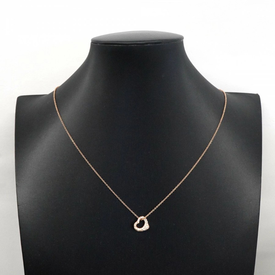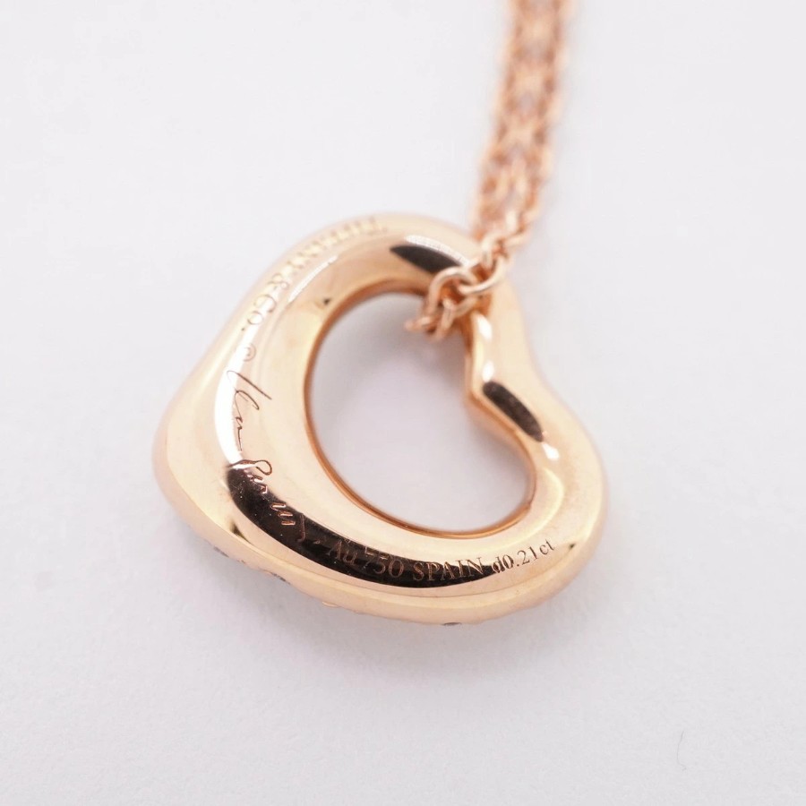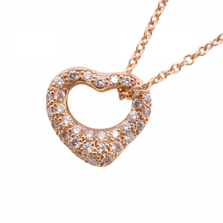 【6jdb0415-05】ティファニー ネックレス オープンハート K18PG ピンクゴールド ダイヤモンド 0.21ct【中古】レディース