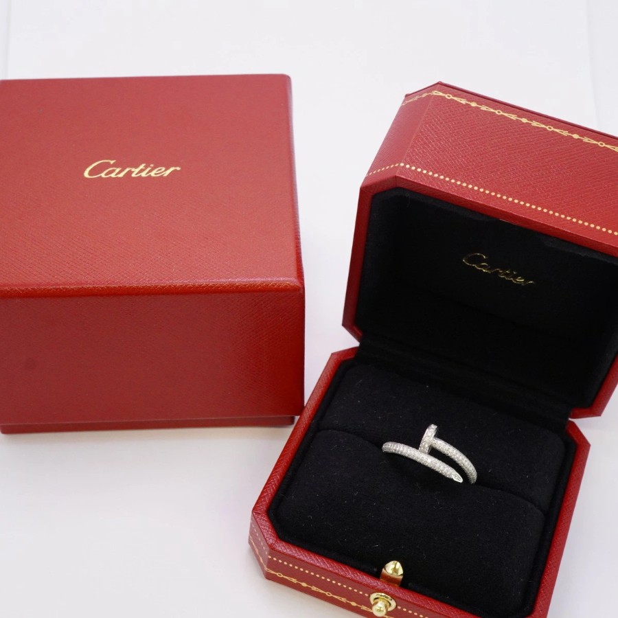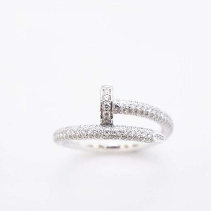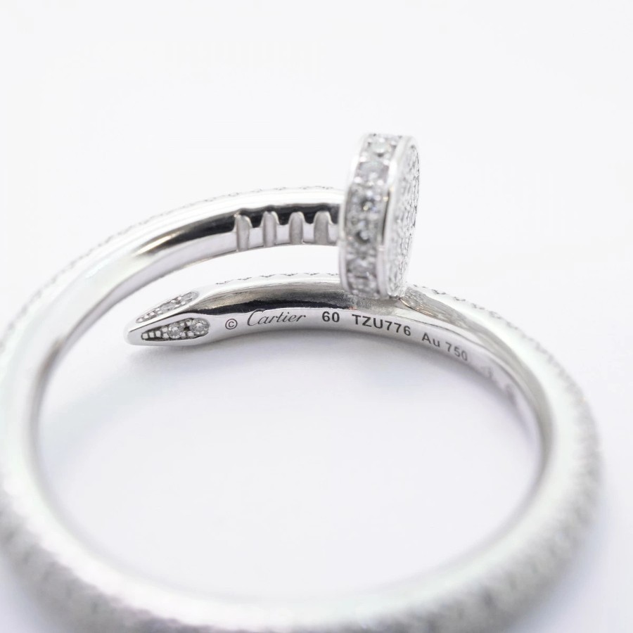 【6jdb0415-08】カルティエ リング ジュストアンクル フルパヴェ K18WG ホワイトゴールド ダイヤモンド #60【中古】メンズ