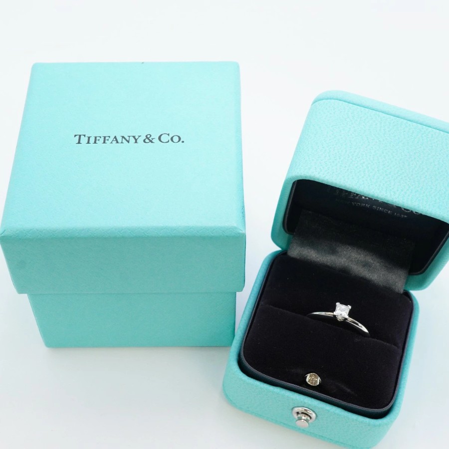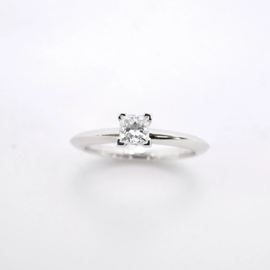 【6jdb0415-10】ティファニー リング ソリティア プリンセスカット 1PD Pt950 プラチナ ダイヤモンド 0.22ct 5.5号【中古】レディース