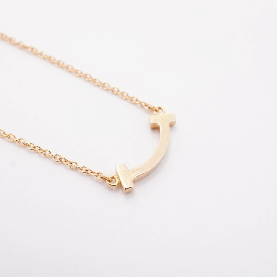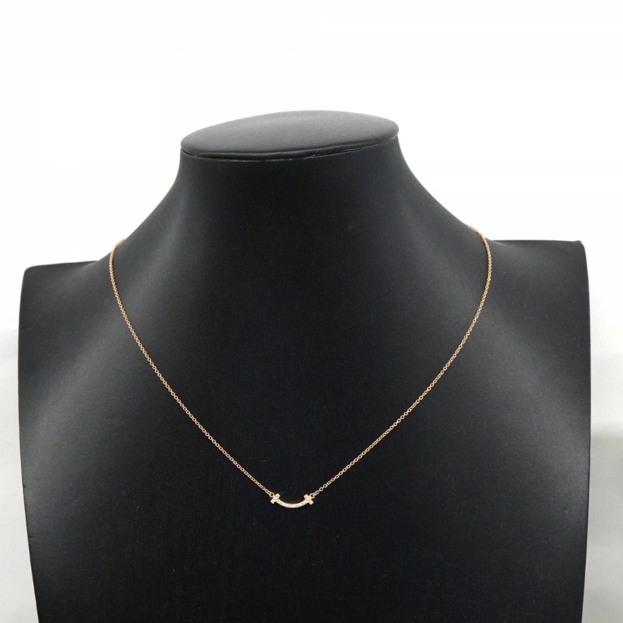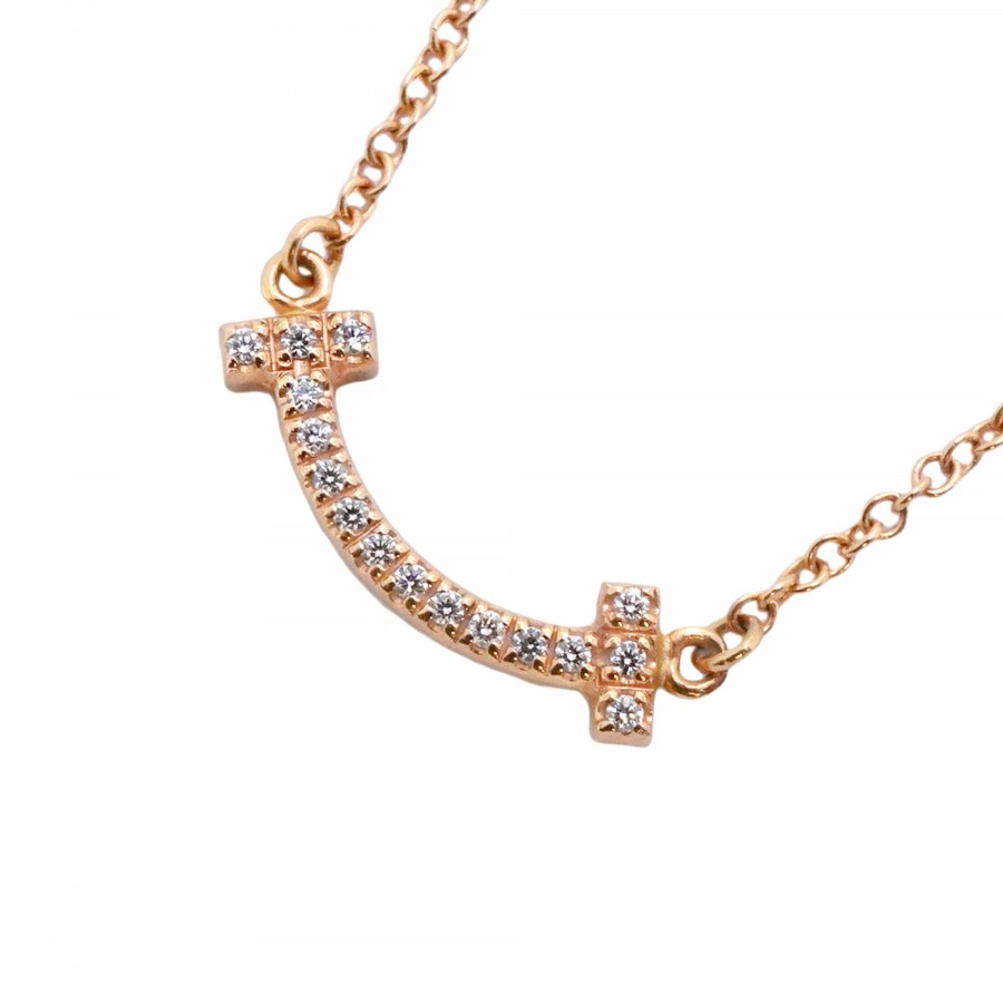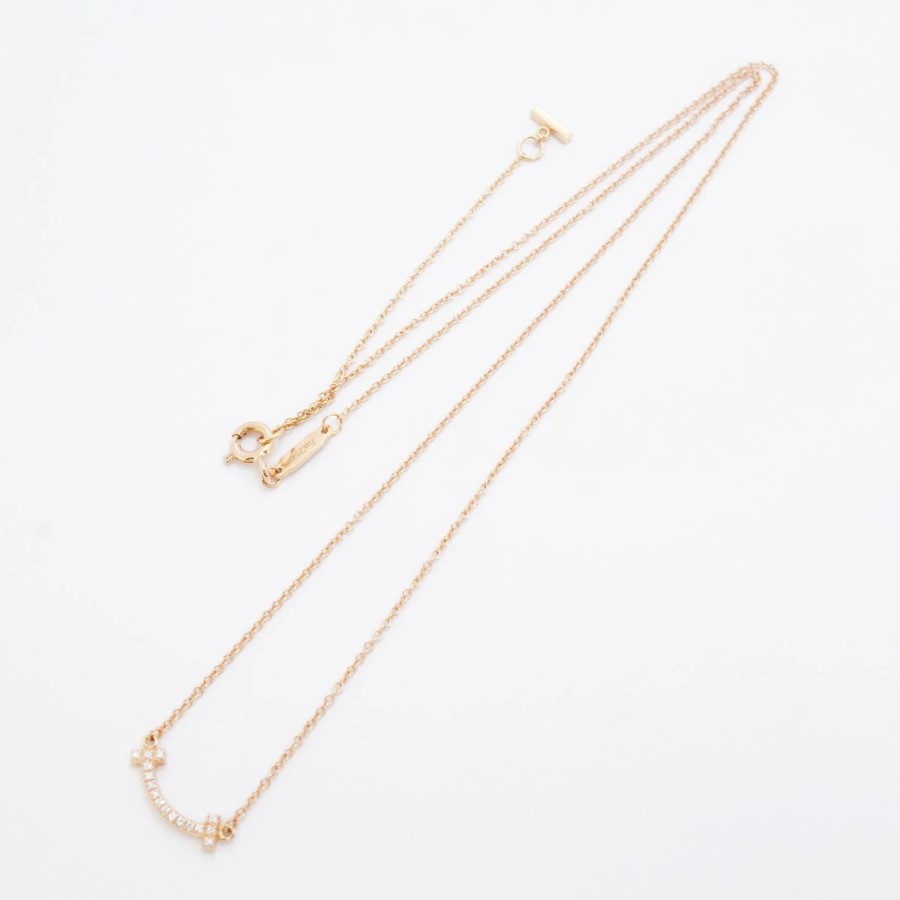 【6jdb0415-41】ティファニー ネックレス Tスマイル ミニ K18PG ピンクゴールド ダイヤモンド【中古】レディース