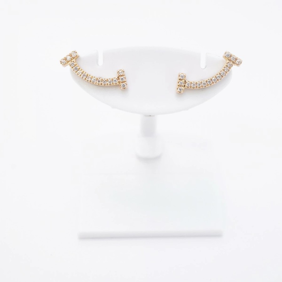 【6jdb0422-18】ティファニー ピアス Tスマイル K18PG ピンクゴールド ダイヤモンド【中古】レディース