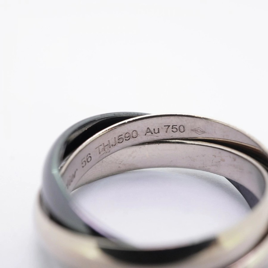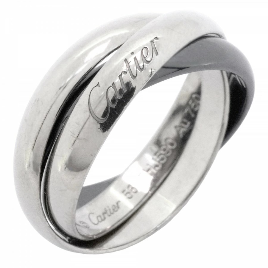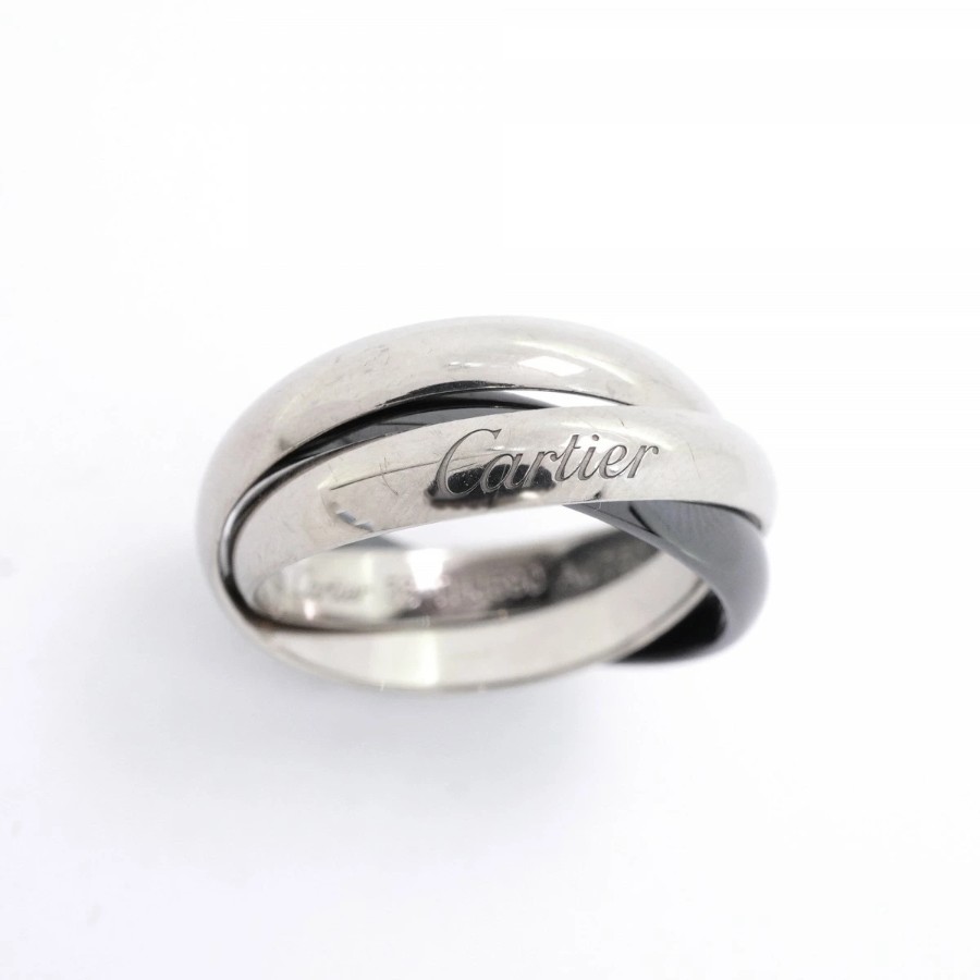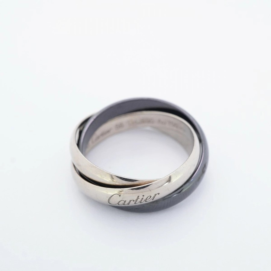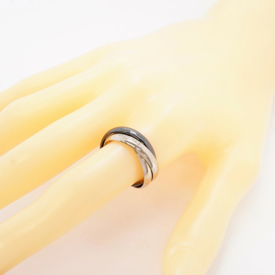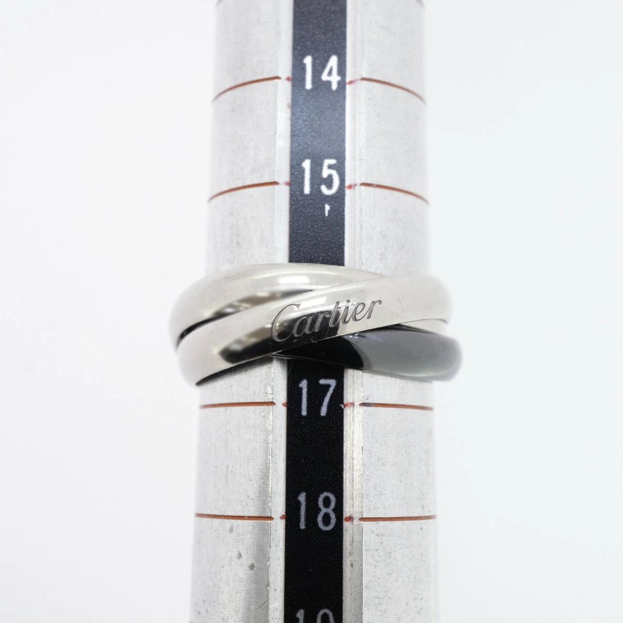 【6jdb0519】カルティエ リング トリニティ クラシックモデル K18WG ホワイトゴールド セラミック ブラック #56【中古】メンズ レディース ユニセックス