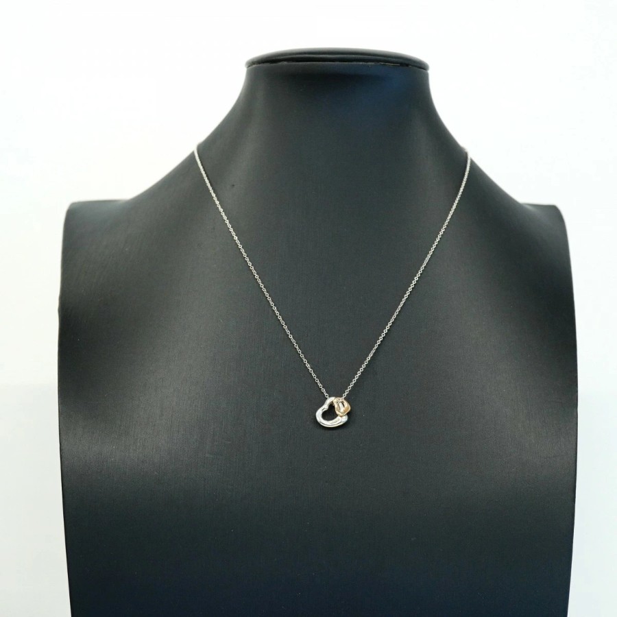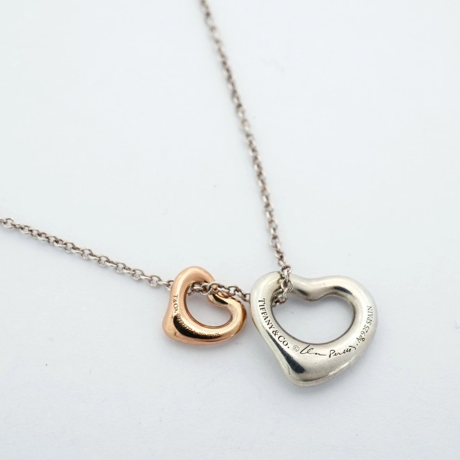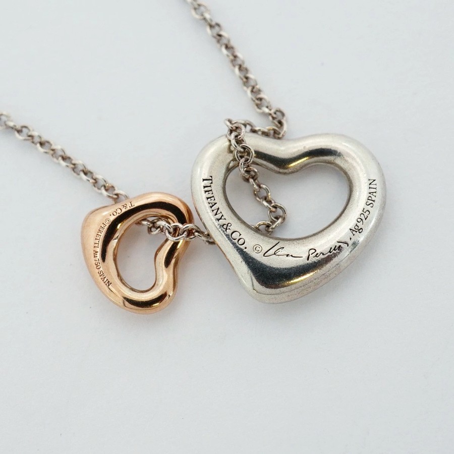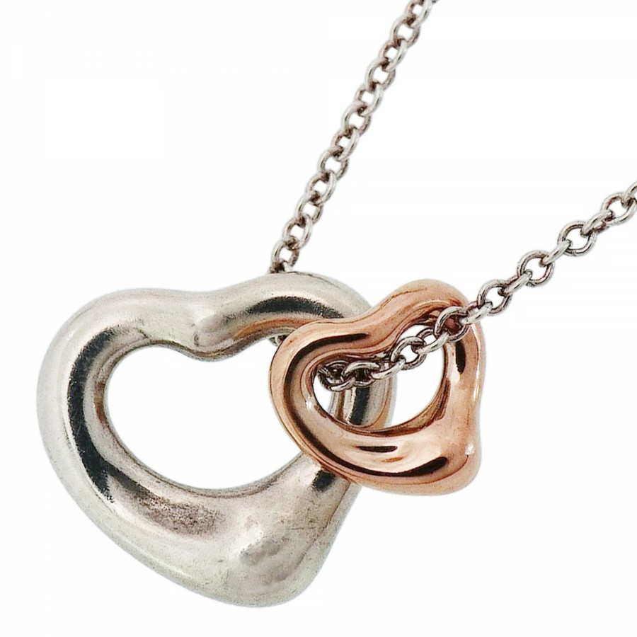 【6jdb0547】ティファニー ネックレス ダブルオープンハート K18PG ピンクゴールド シルバー925【中古】レディース