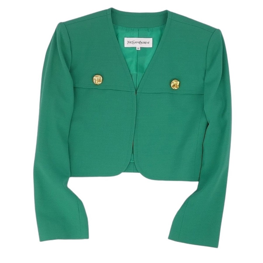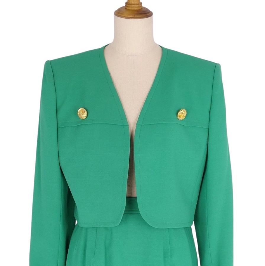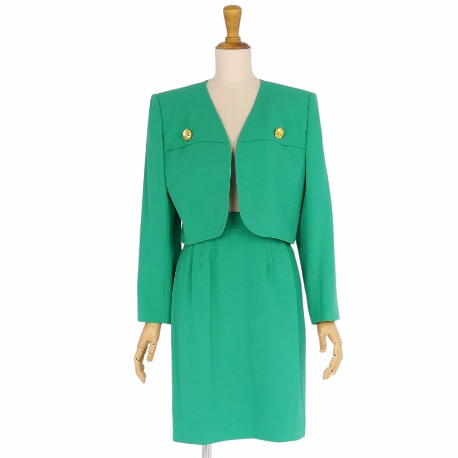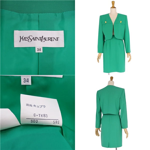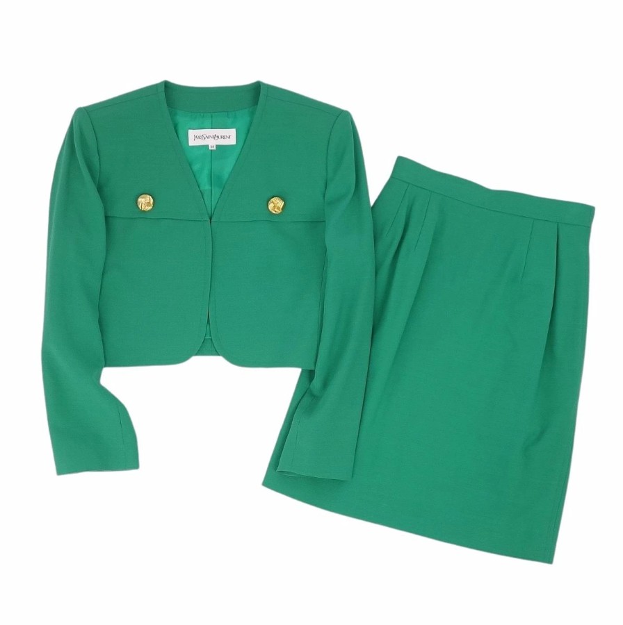 【Excellent Condition】Vintage Yves Saint Laurent Suit Set (Jacket and Skirt) Women's Size 7A3 (Equivalent to S) Green 【Used】