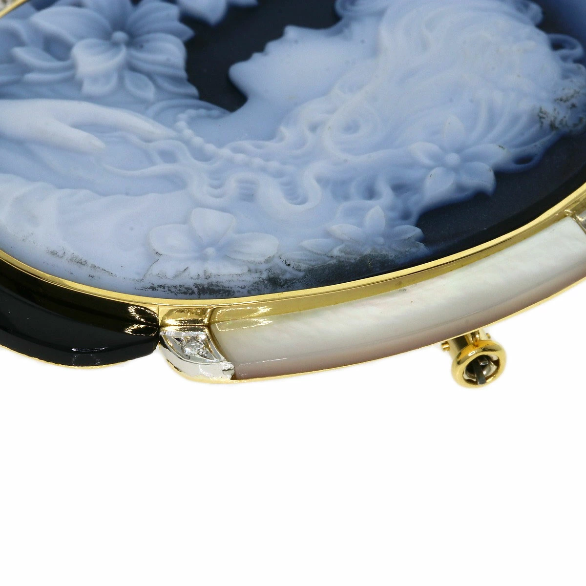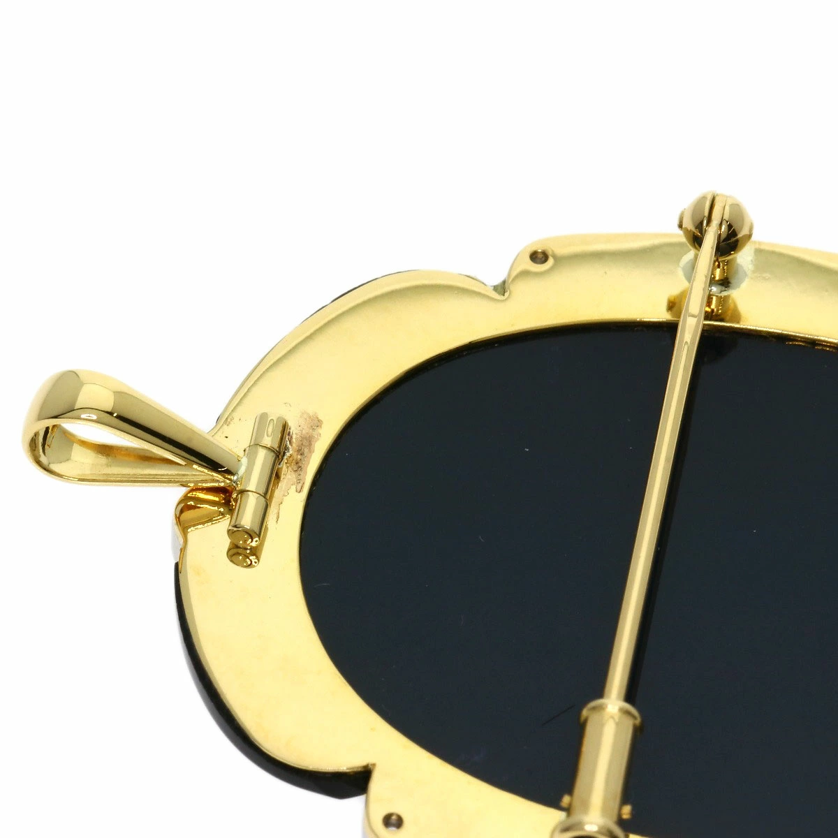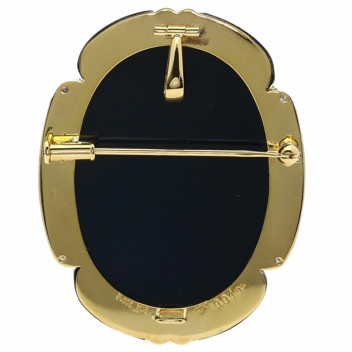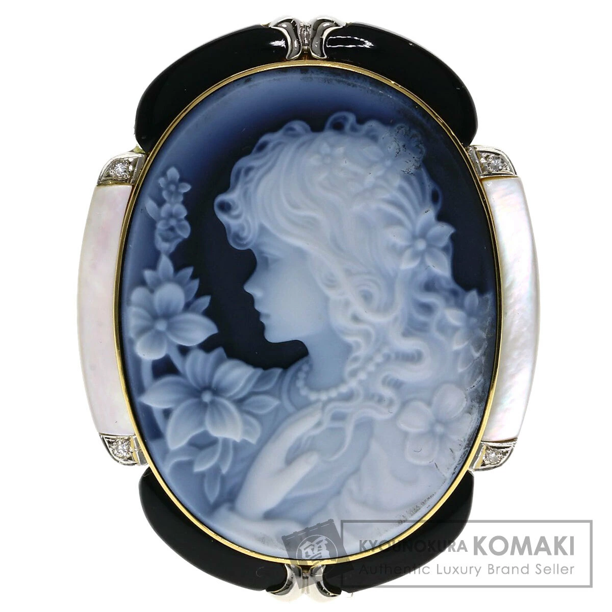 0.04ct Stone Cameo, Shell, and Diamond Brooch, 17.8g, 18K Yellow Gold/PT900, Women's [Pre-owned]