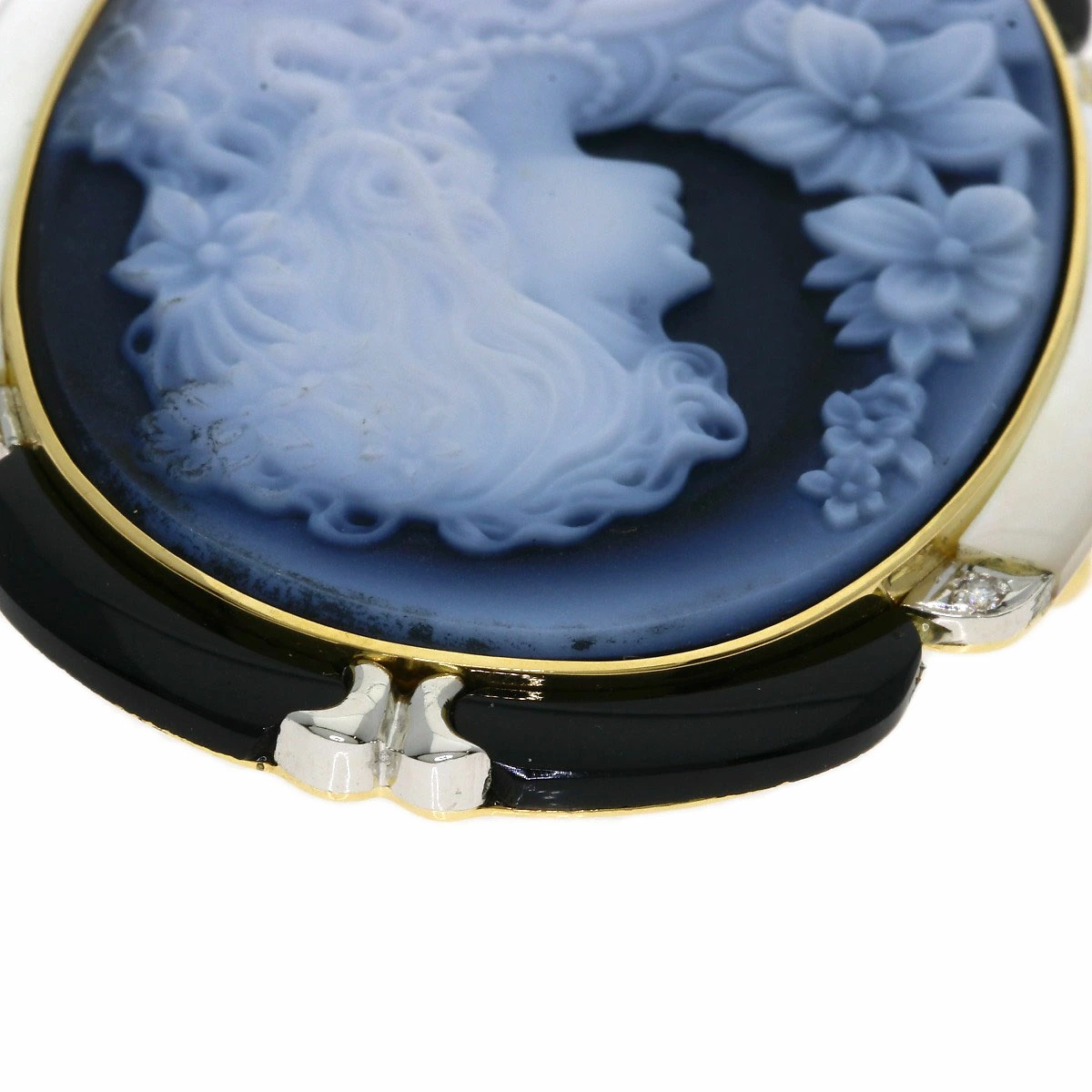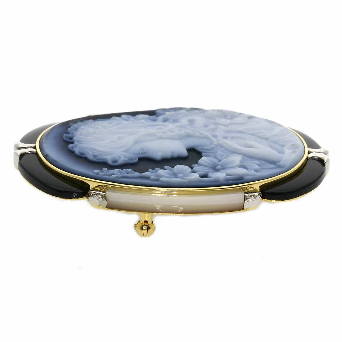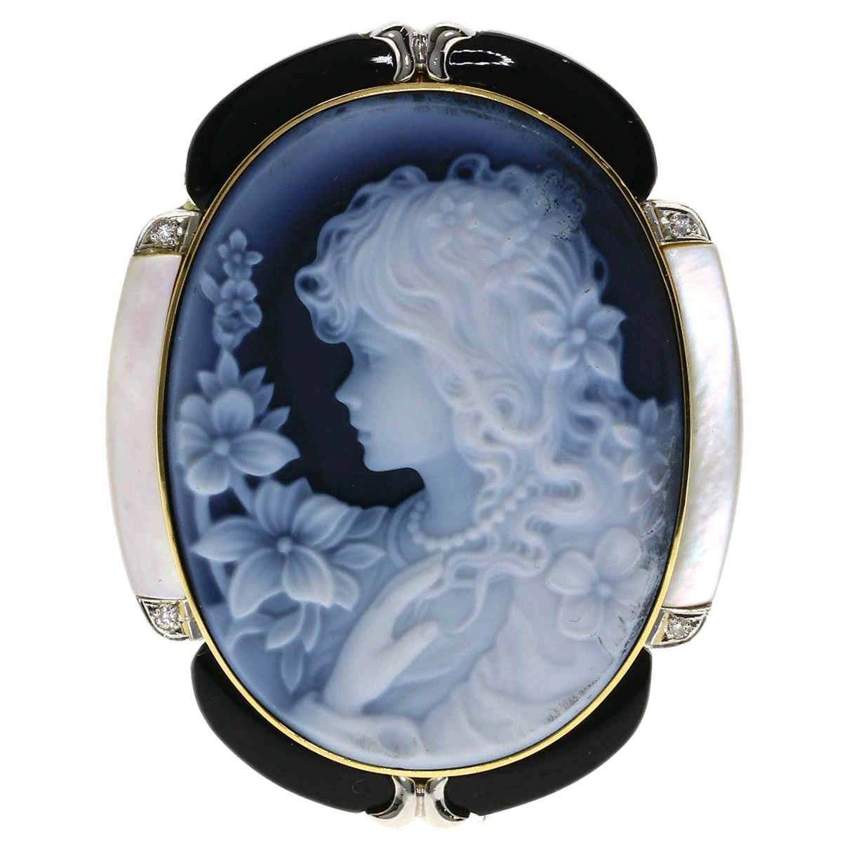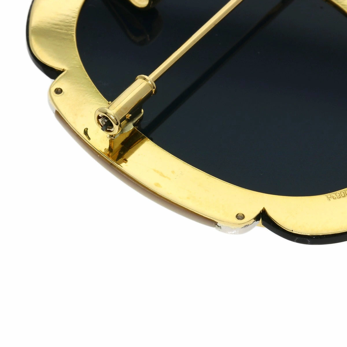0.04ct Stone Cameo, Shell, and Diamond Brooch, 17.8g, 18K Yellow Gold/PT900, Women's [Pre-owned]