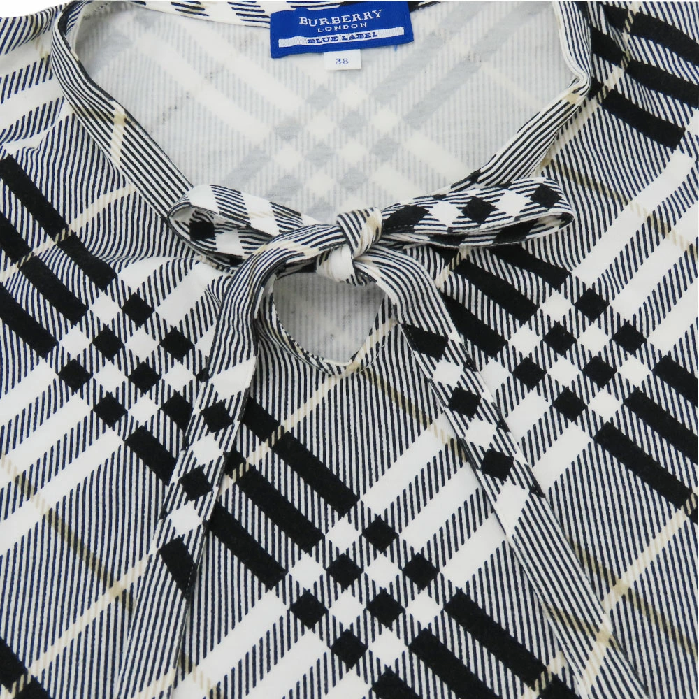 | 品名 | 【中古】 バーバリーブルーレーベル 半袖Tシャツ ノバチェック 38 コットン ホワイト ブラック タイリボン カットソー レディース 女性 BURBERRY BLUE LABEL |