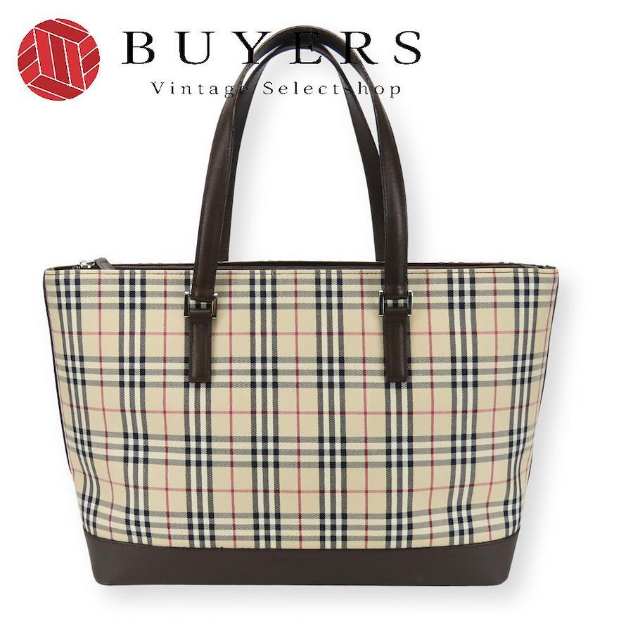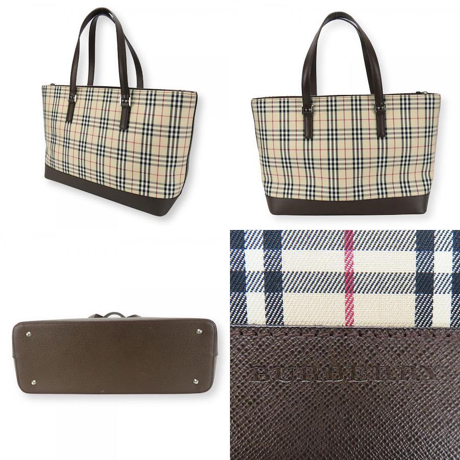 品名【中古】 バーバリー トートバッグ キャンバス レザー ベージュ ブラウン ノバチェック レディース 女性 BURBERRY