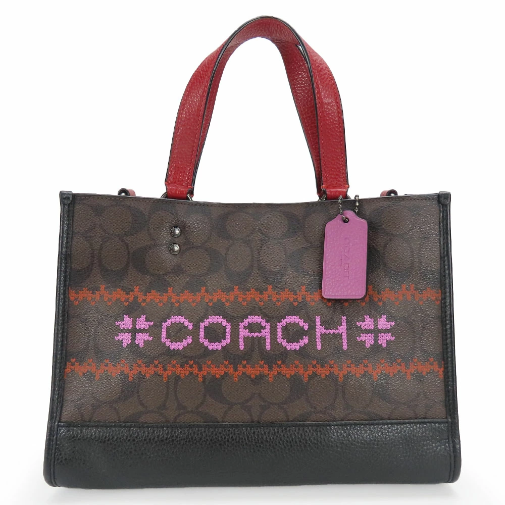 | 品名 | 【中古】 コーチ ハンドバッグ デンプシー C1527 キャリーオール レザー PVC ダークブラウン レッド 2WAYショルダー 普段使い おしゃれ レディース 女性 COACH |