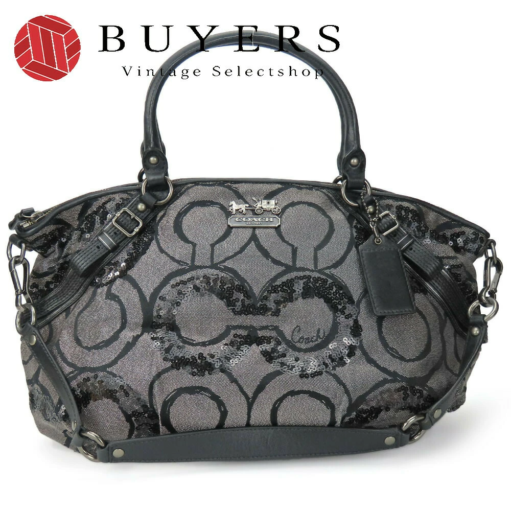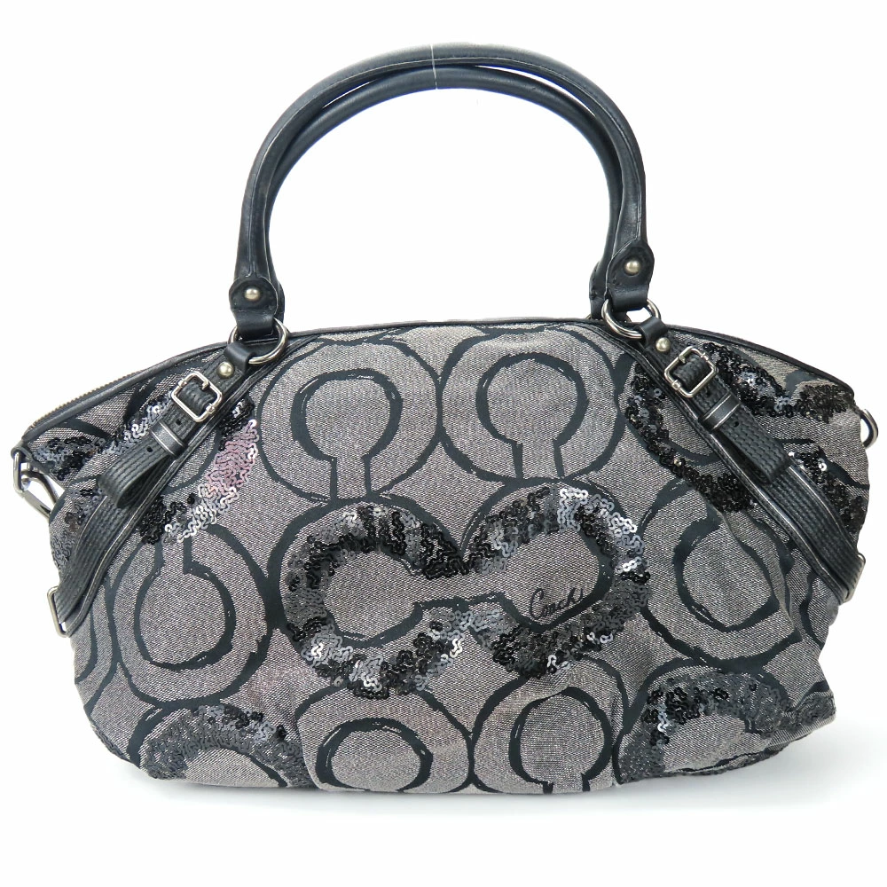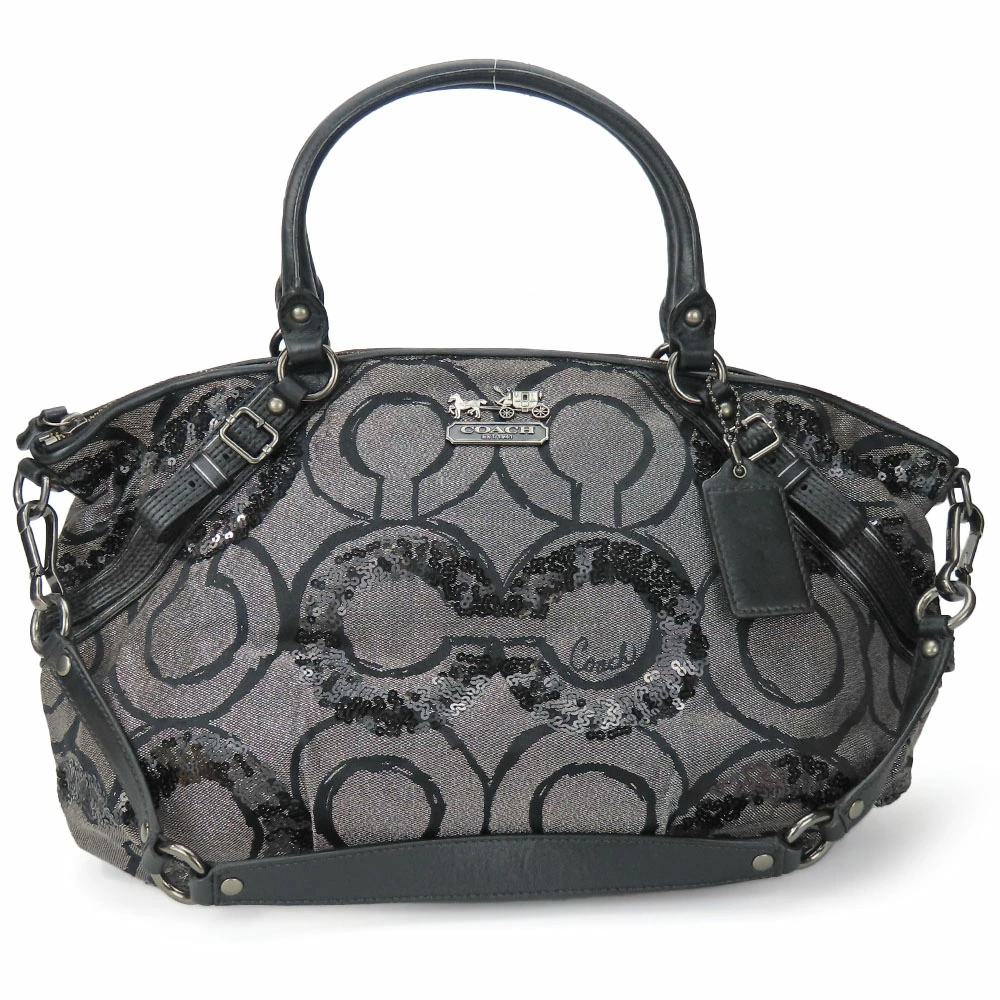 | 品名 | 【中古】 コーチ ハンドバッグ 15940 オプアートマディソン キャンバス レザー スパンコール ブラック シルバー 2WAY ショルダー ブラック金具 レディース 女性 COACH |