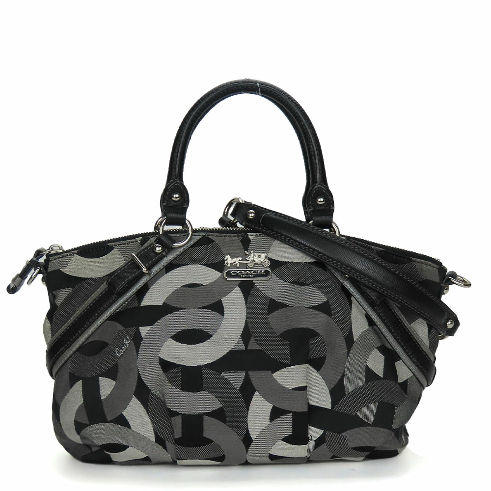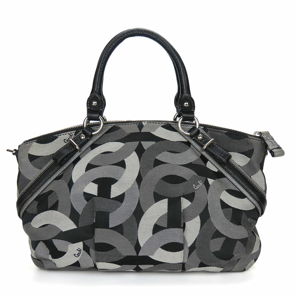 | 品名 | 【中古】 コーチ ハンドバッグ 16901 オプアート キャンバス レザー ブラック グレー シルバー金具 2WAY ショルダーバッグ レディース 女性 COACH |