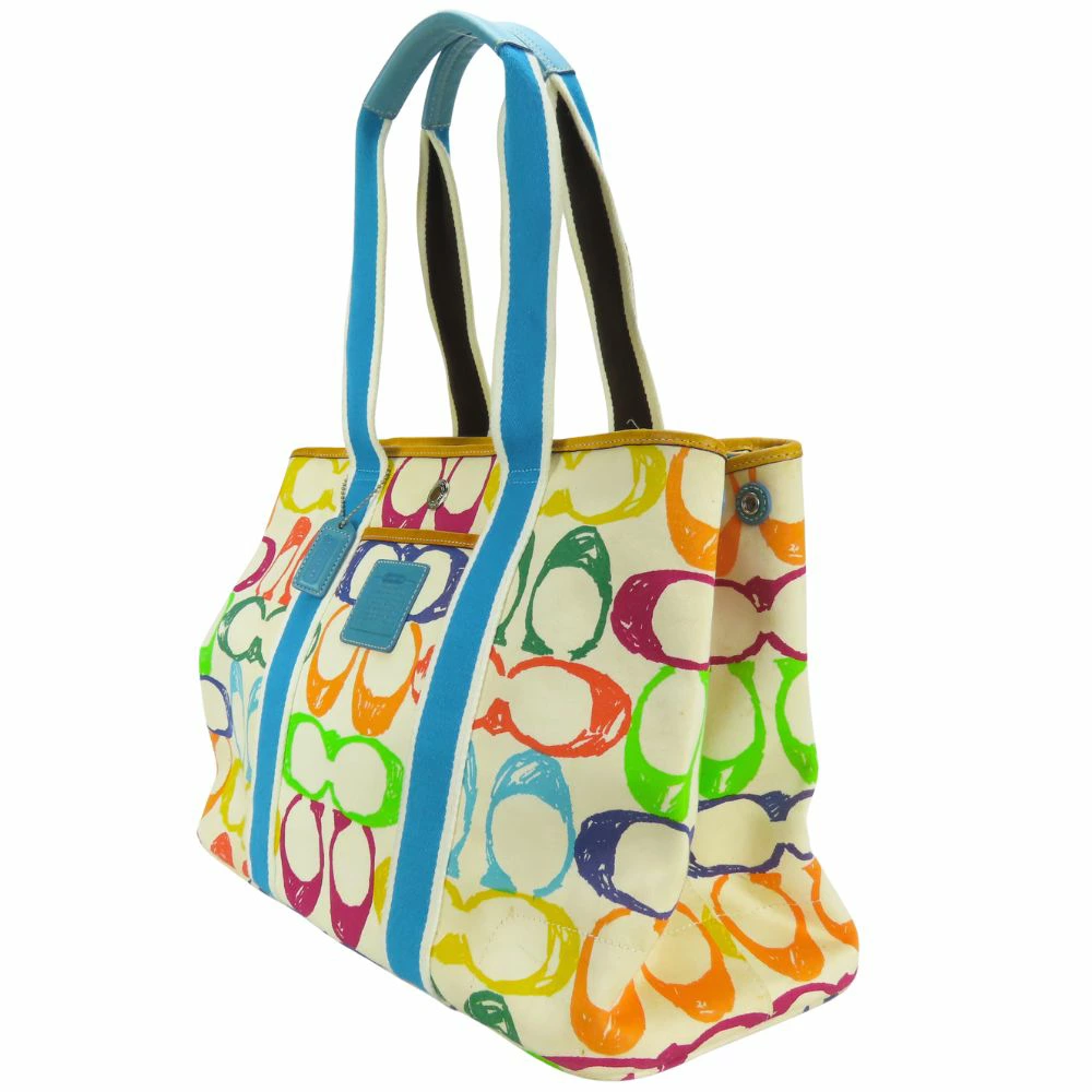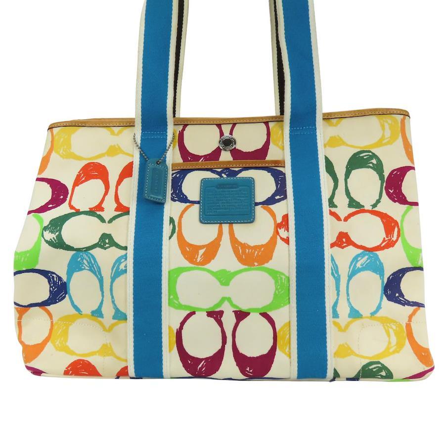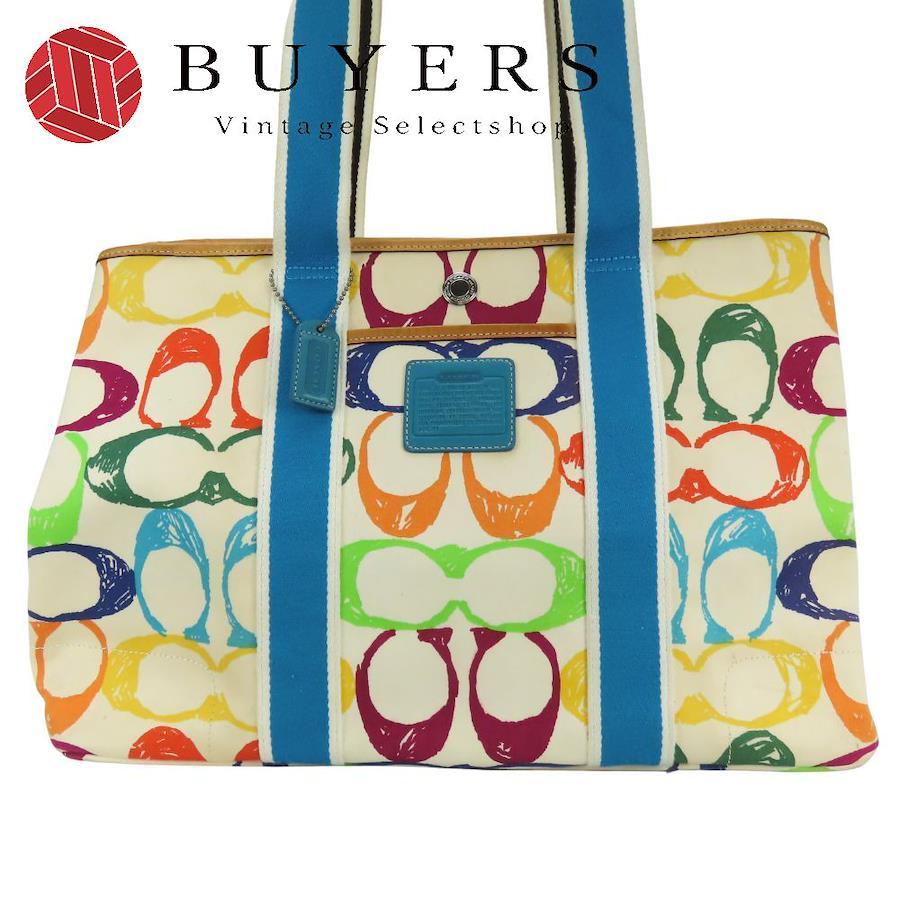 品名【中古】 コーチ トートバッグ 5661 スクリブル シグネチャー キャンバス レザー マルチカラー ベージュ系 カジュアル 普段使い レディース 女性 COACH