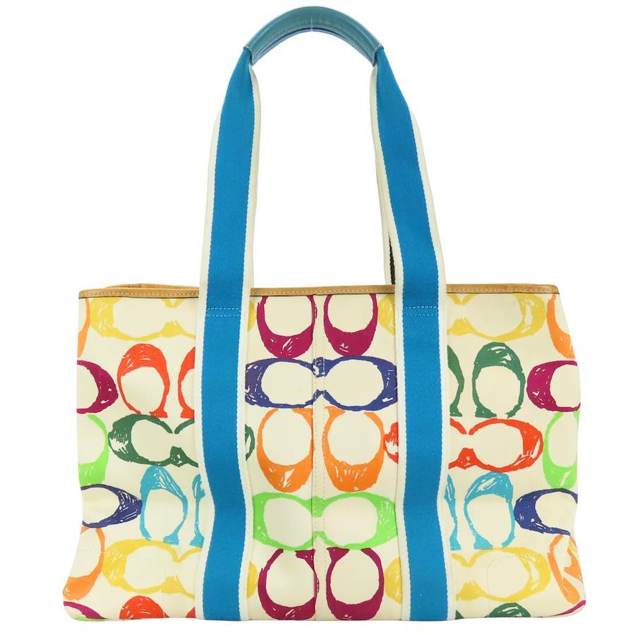 [10% OFF!! Rakuten Fashion THE SALE!!] [Pre-owned] Coach Tote Bag 5661 Scribble Signature Canvas and Leather in Multicolor Beige. Casual, everyday wear for women. COACH