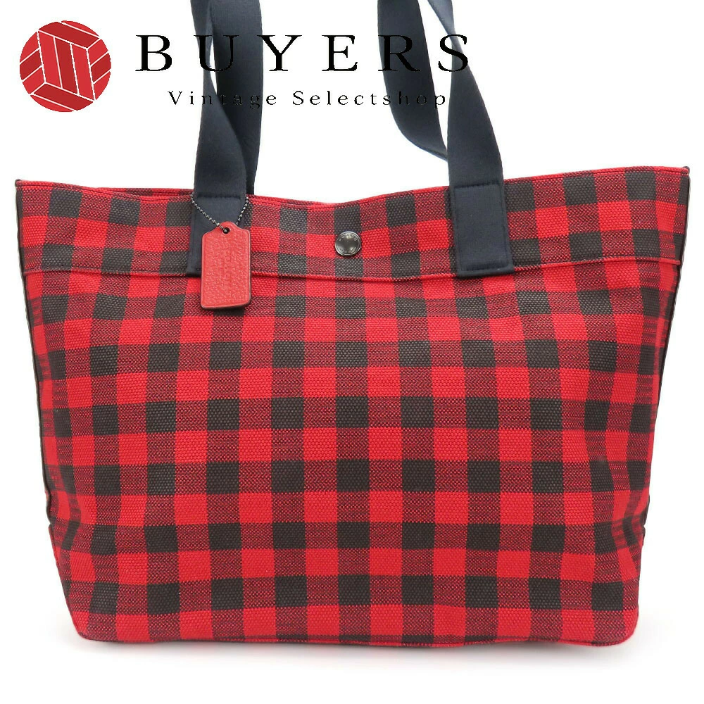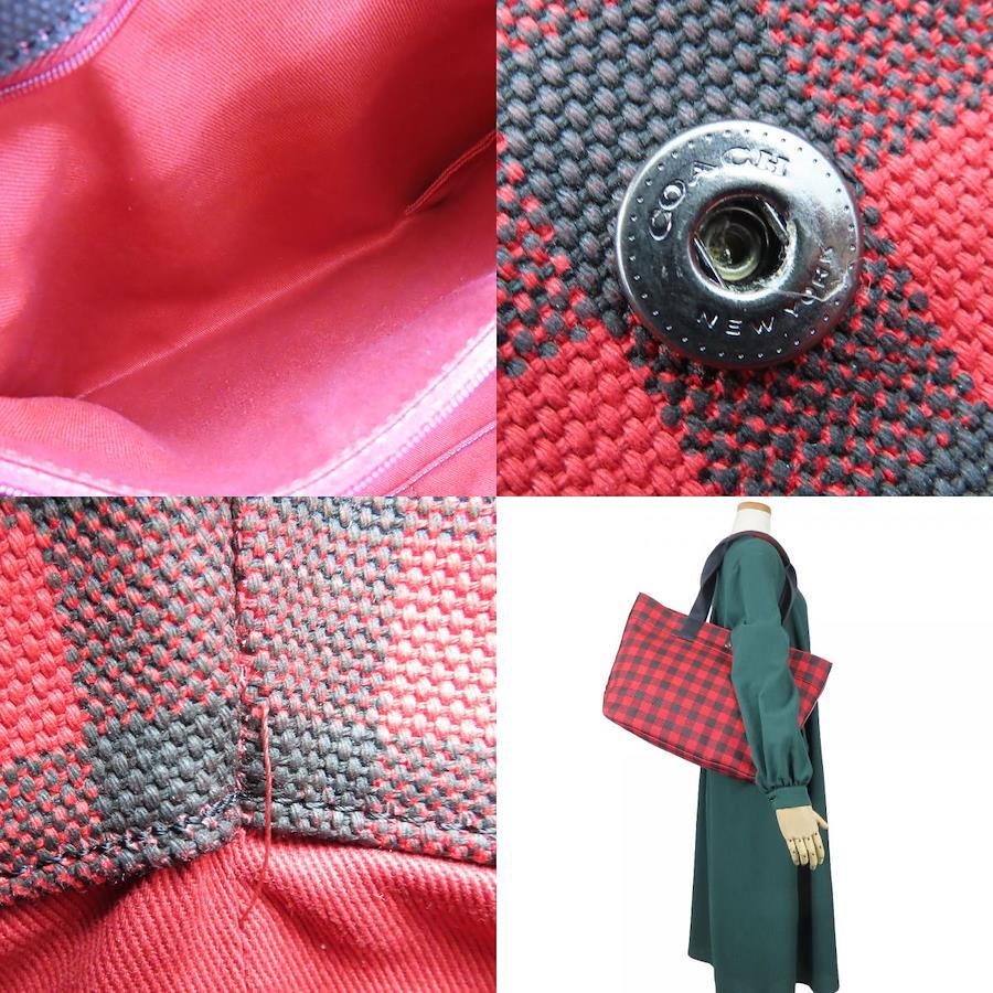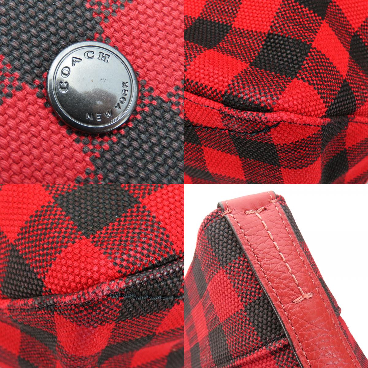 | 品名 | 【中古】 コーチ トートバッグ F39848 キャンバス レザー レッド ブラック シルバー金具 肩掛け ギンガムチェック柄 カジュアル レディース 女性 COACH |