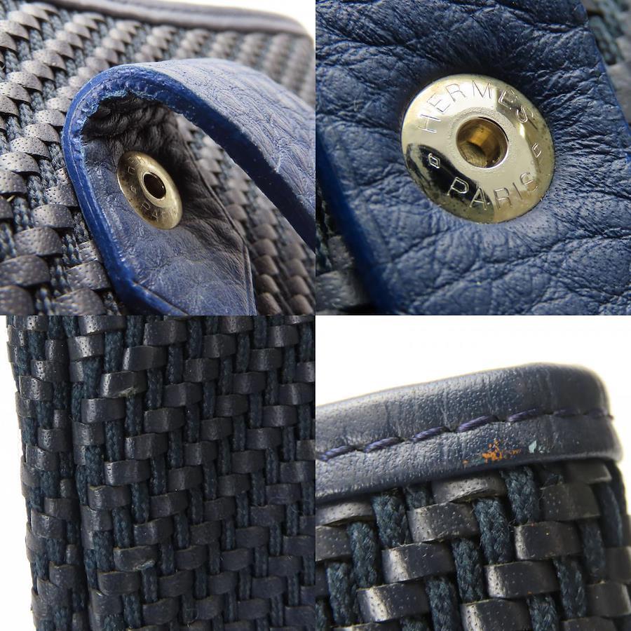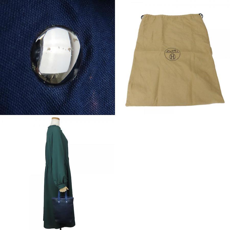 品名【中古】 エルメス トートバッグ アメダバディアゴPM レザー ポリエステル ネイビー シルバー金具 編み込み ミニトート カジュアル HERMES