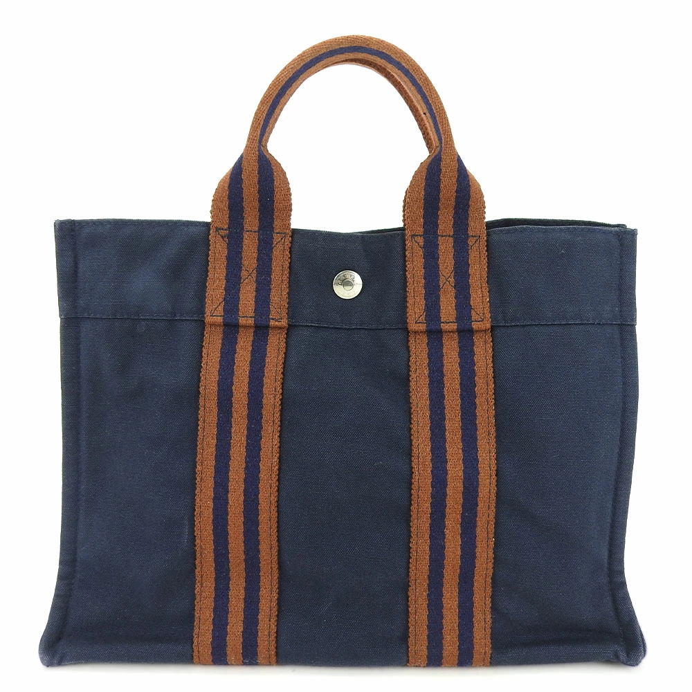 | 品名 | 【中古】 エルメス トートバッグ フールトゥPM キャンバス ネイビー ブラウン シルバー金具 カジュアル 普段使い レディース メンズ HERMES |