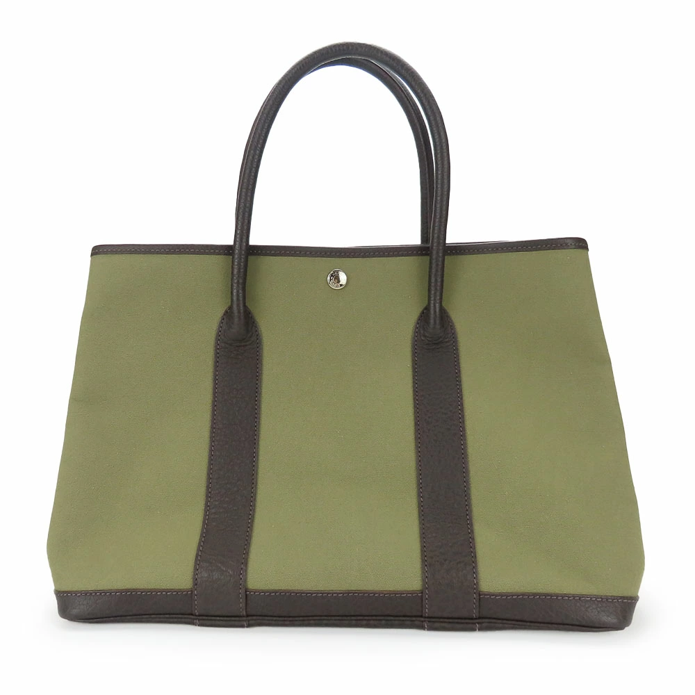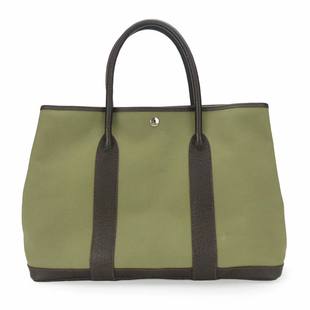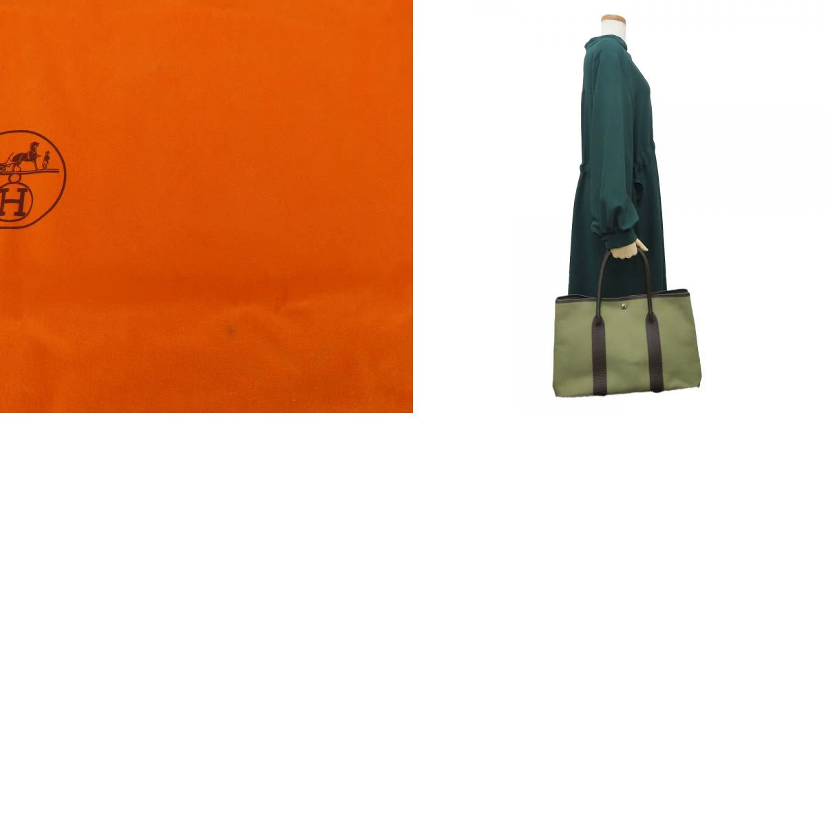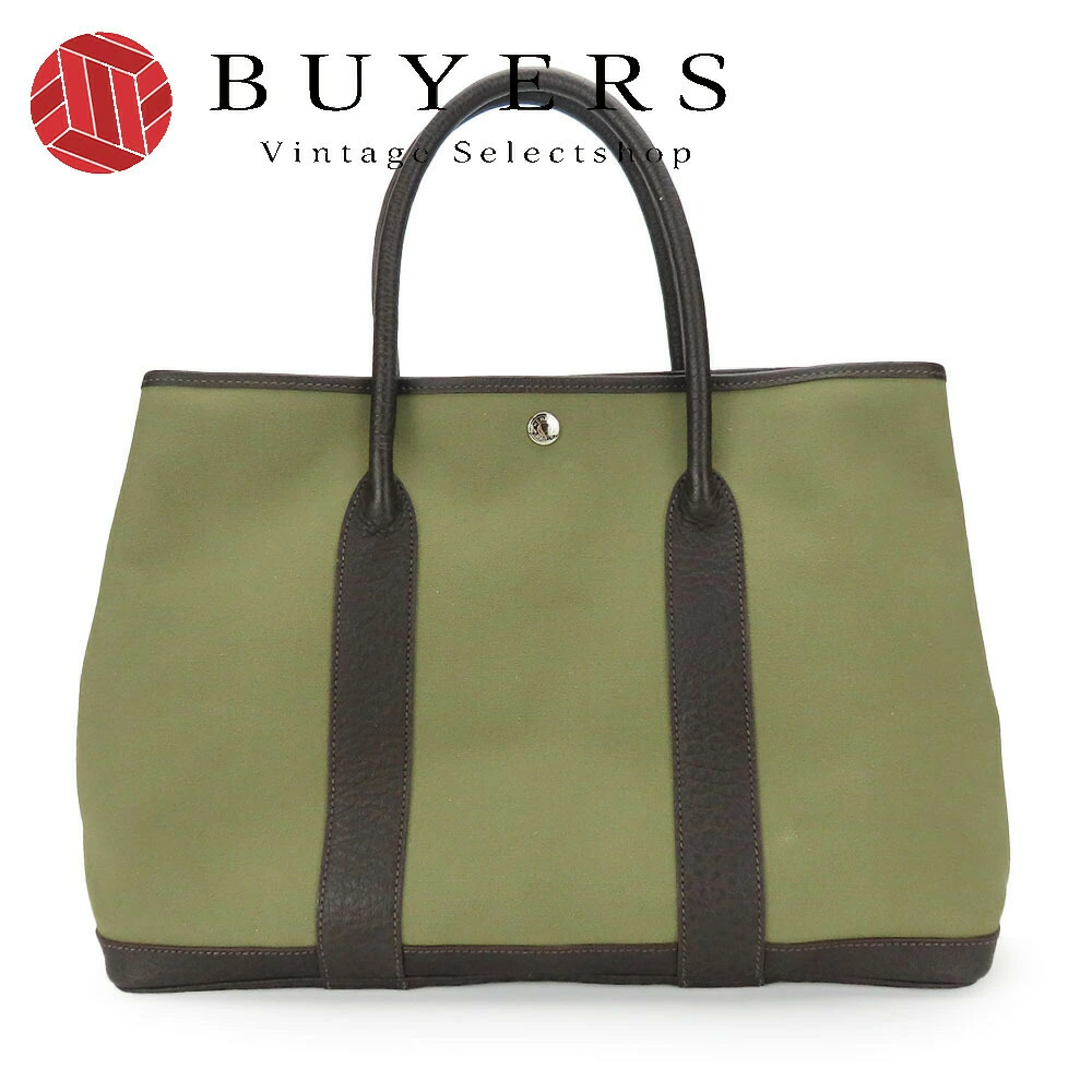 | 品名 | 【中古】 エルメス トートバッグ ガーデンパーティPM キャンバス レザー カーキ ブラウン シルバー金具 □F刻印 カジュアル 普段使い HERMES |