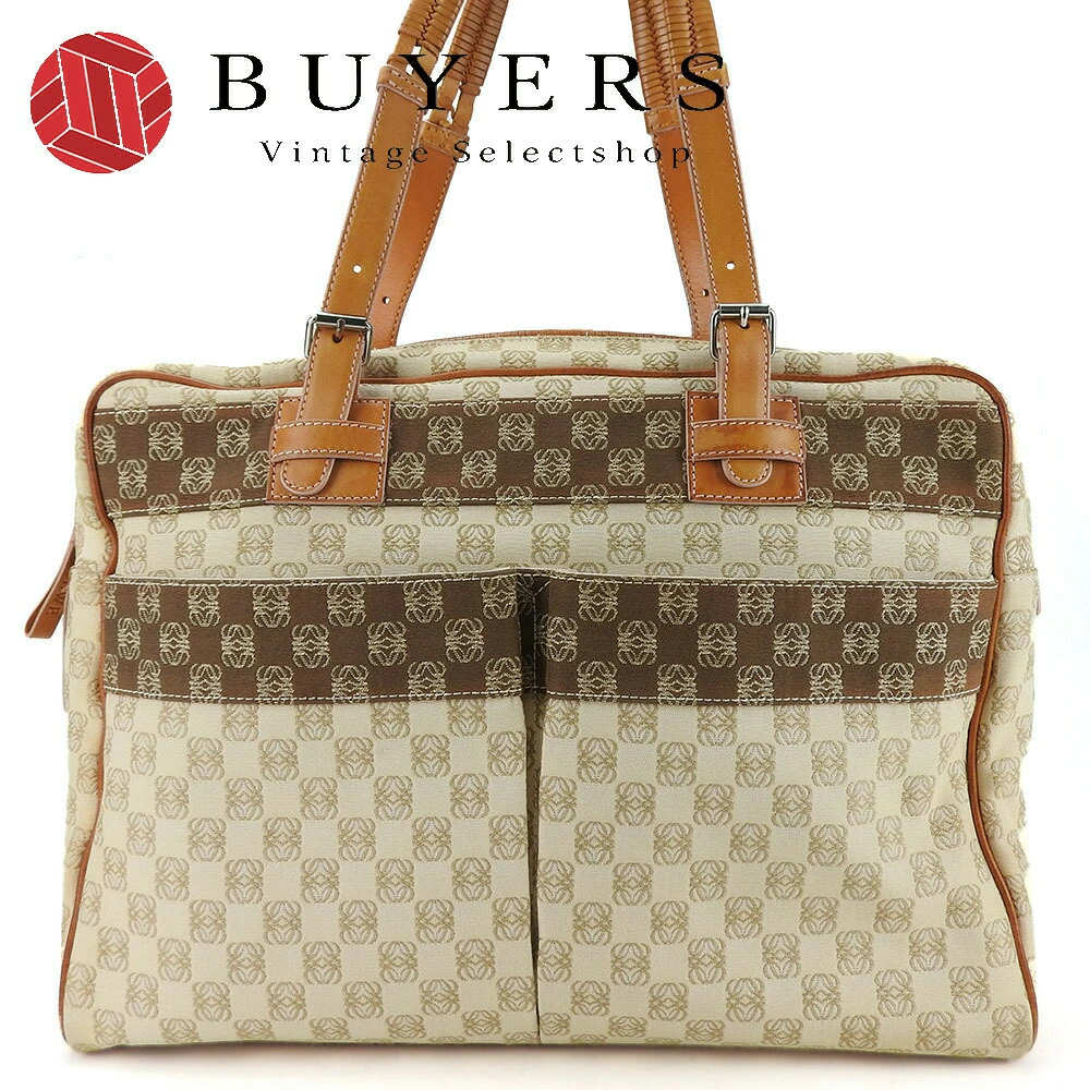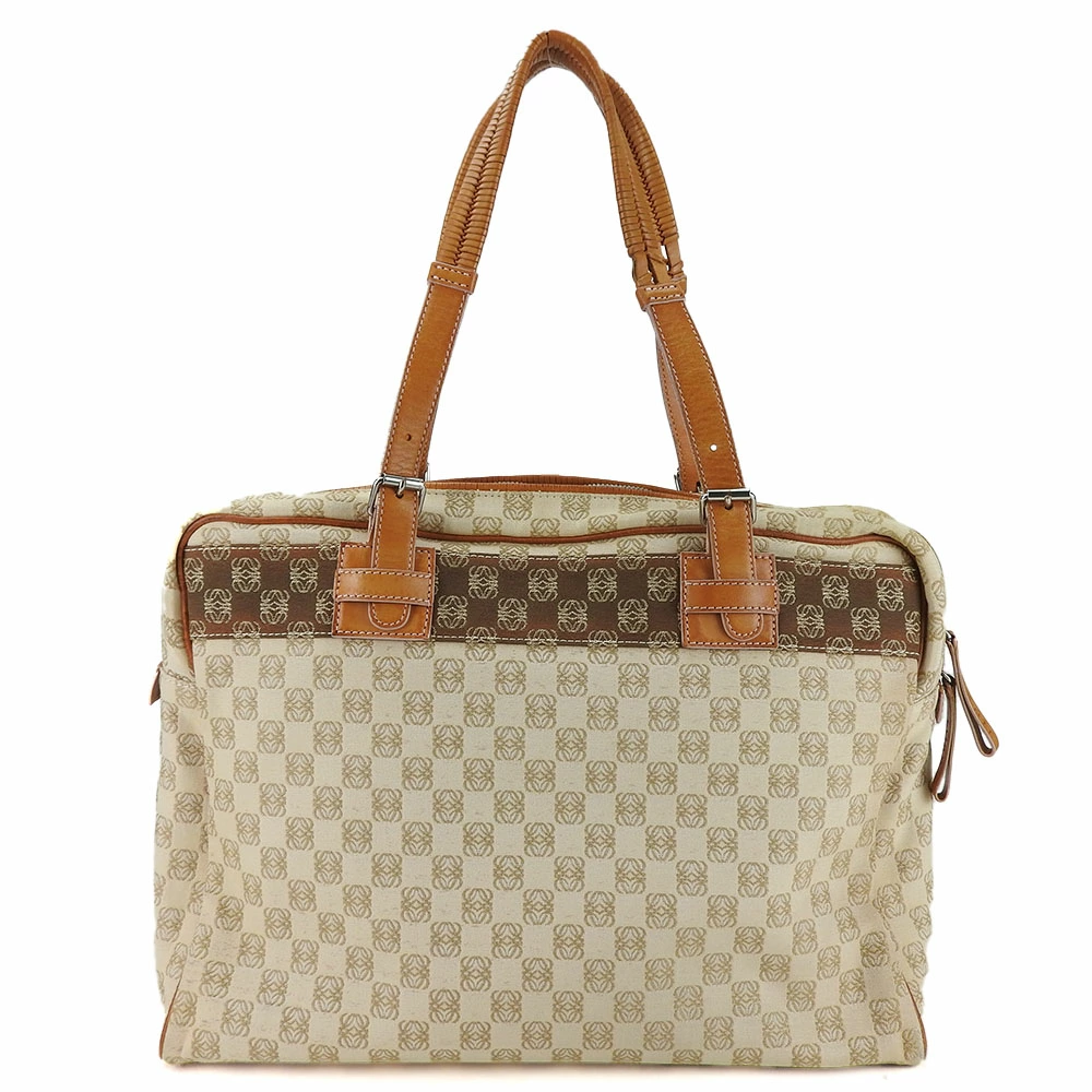 | 品名 | 【中古】 ロエベ トートバッグ アナグラム キャンバス レザー ベージュ ブラウン シルバー金具 ビジネスバッグ レディース 女性 LOEWE |