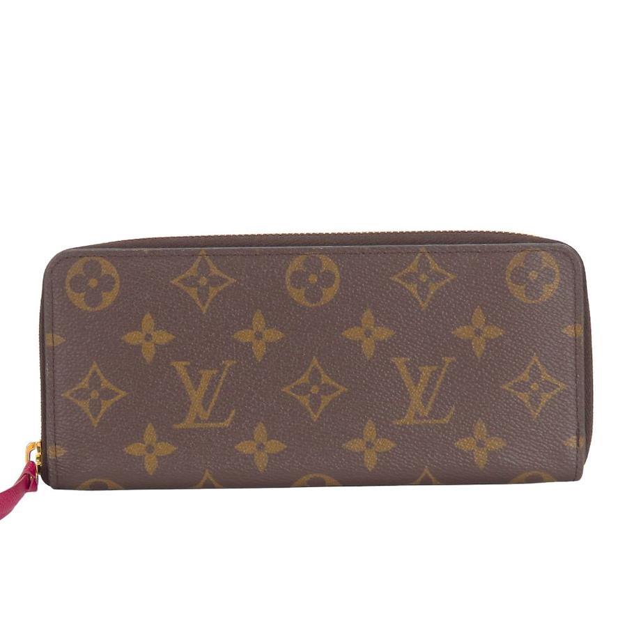 | 品名 | 【中古】 ルイ・ヴィトン 長財布 ポルトフォイユ・クレマンス M60742 モノグラム フューシャ ブラウン ゴールド金具 ラウンドファスナー スリム 小物 レディース 女性 LOUIS VUITTON |