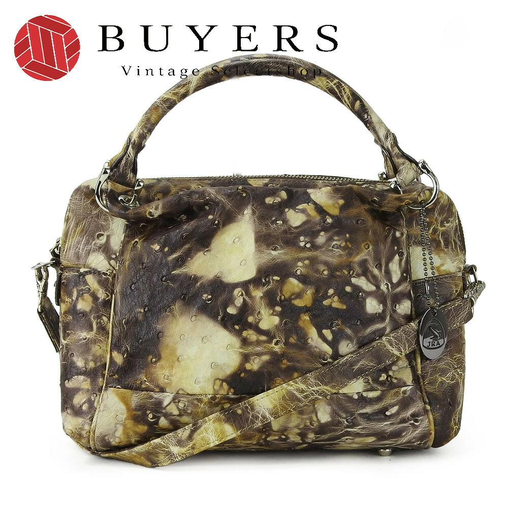 | 品名 | 【中古】 ノーブランド ハンドバッグ オーストリッチ ベージュ系 ブラック シルバー金具 2WAY ショルダーバッグ JRAタグ付き レディース 女性 no brand |