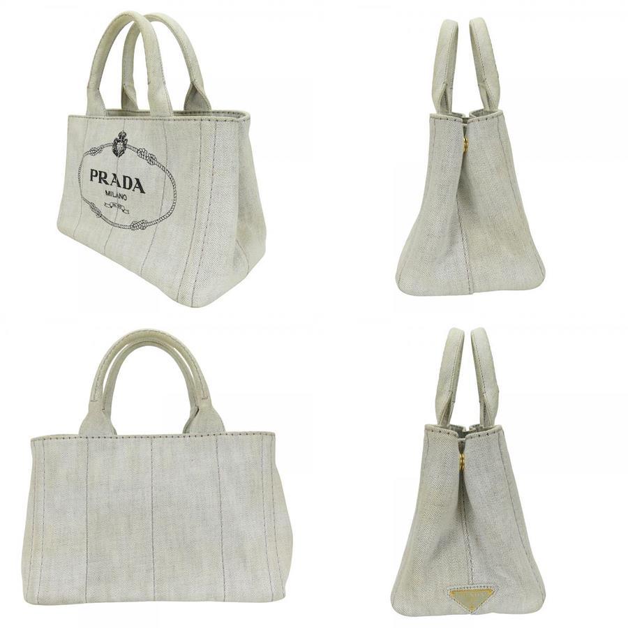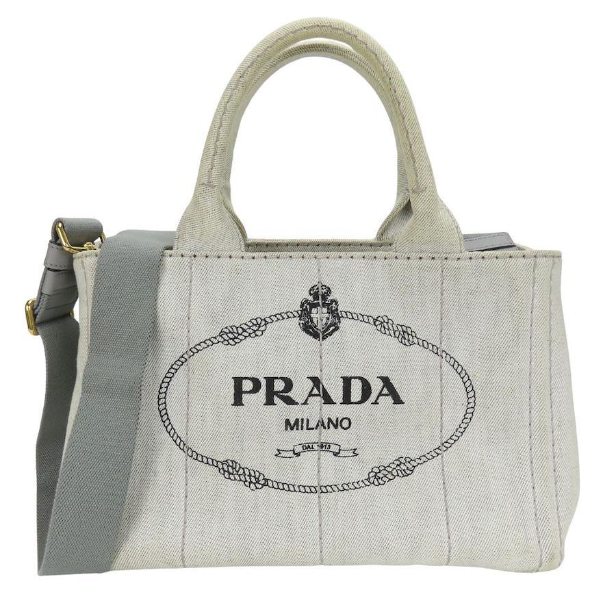 | 品名 | 【中古】 プラダ トートバッグ カナパ 1BG439 キャンバス グレー ライトグレー ゴールド金具 ショルダー レディース 女性 PRADA |