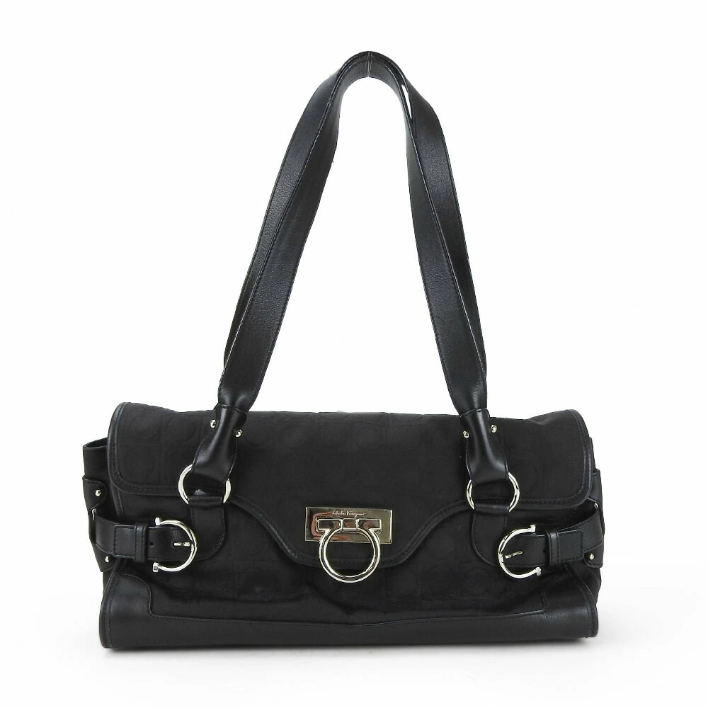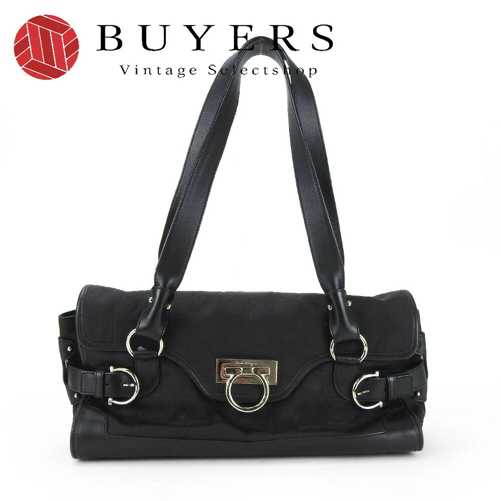 | 品名 | 【中古】 サルヴァトーレフェラガモ ハンドバッグ EX-21 4913 ガンチーニ キャンバス レザー ブラック シルバー金具 肩がけ レディース 女性 Salvatore Ferragamo |