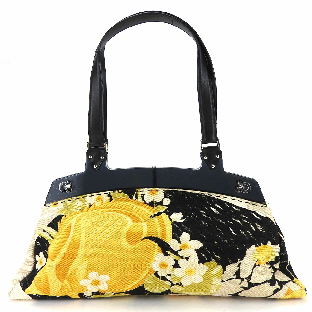 | 品名 | 【中古】 サルヴァトーレフェラガモ トートバッグ AQ-21 4317 ガンチーニ キャンバス レザー プラスチック NERO ブラック イエロー 総柄 レディース 女性 Salvatore Ferragamo |