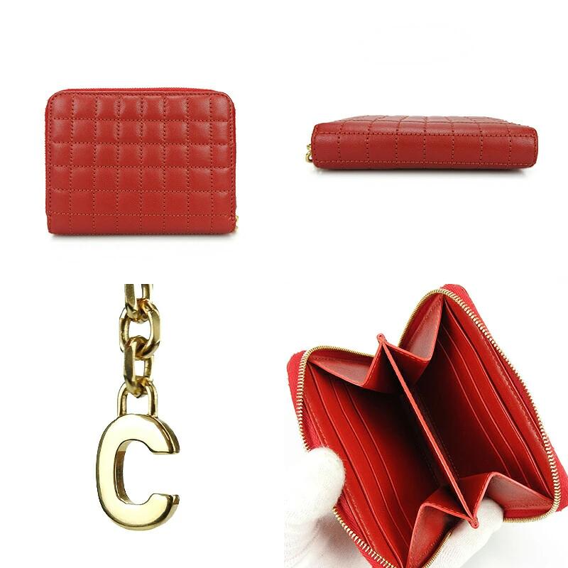 品名【中古】セリーヌ コンパクトジップウォレット CELINE 10B663BFL.27ED Cチャーム カーフスキン レッド 赤 G金具 小物 compacr zipped wallet