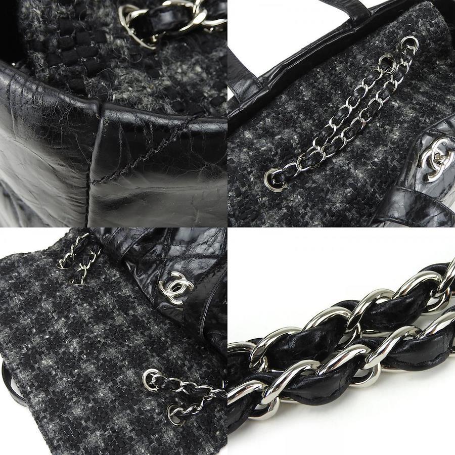 [10% OFF!! Rakuten Super Sale!!] [Pre-owned] Chanel Portobello Tote Bag in Black Leather and Tweed with Silver Hardware and 2-Way Chain, Size 12, Women's, CHANEL