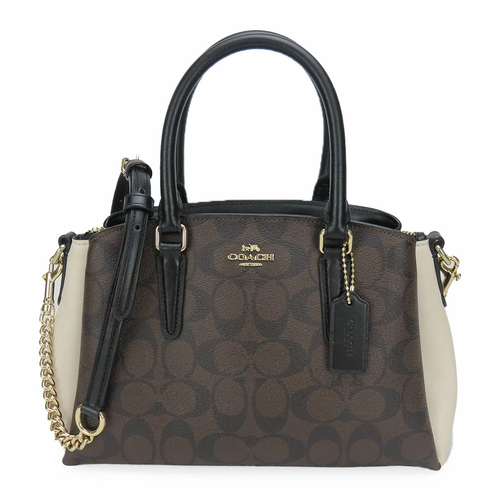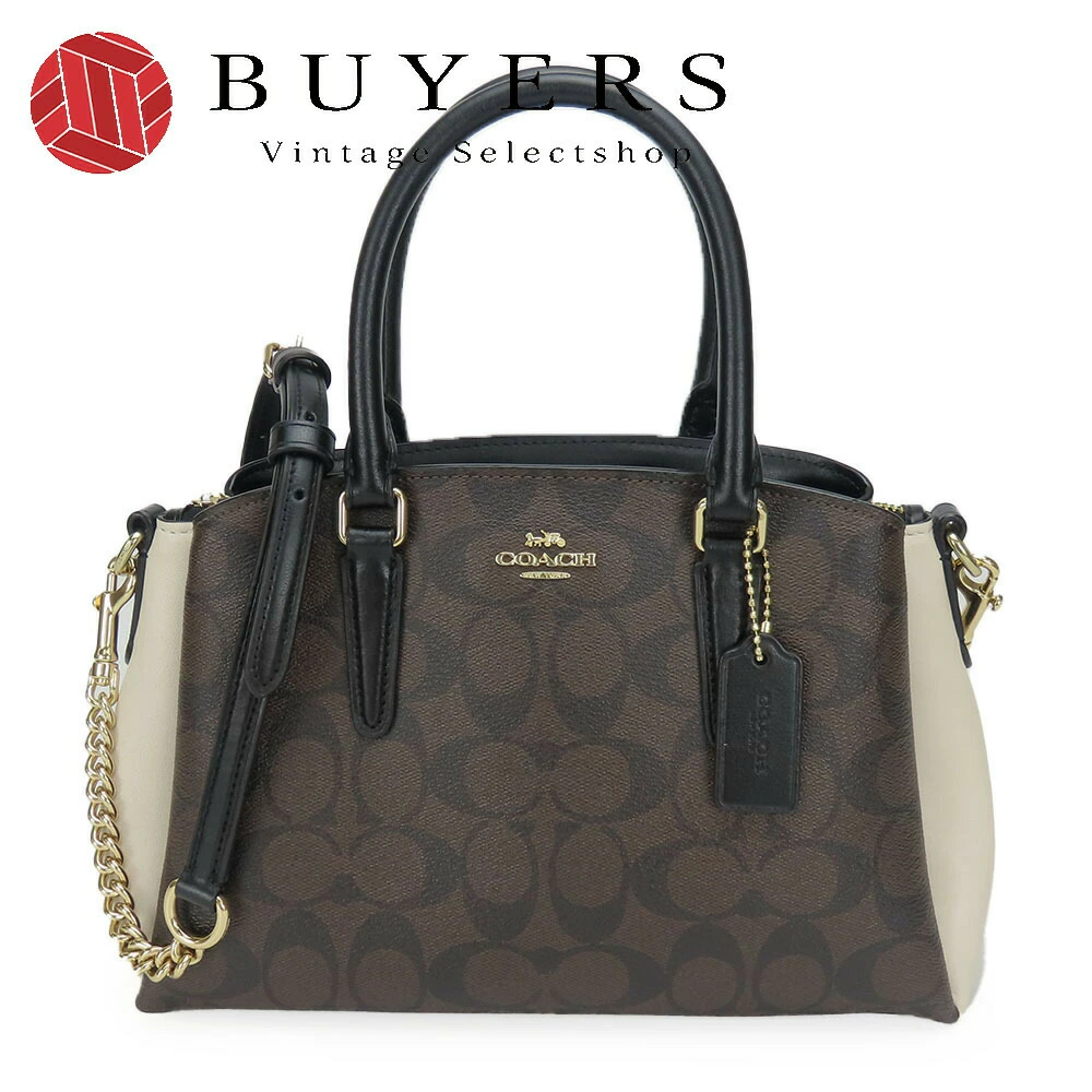 | 品名 | 【中古】 コーチ ショルダーバッグ F50054 シグネチャー レザー ダークブラウン ブラック アイボリー ゴールド金具 2WAY ミニ ハンドバッグ レディース 女性 COACH |