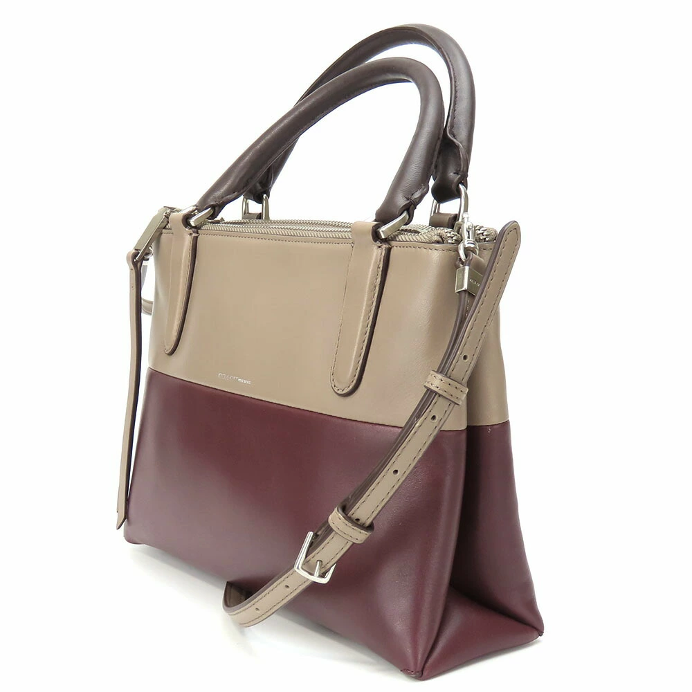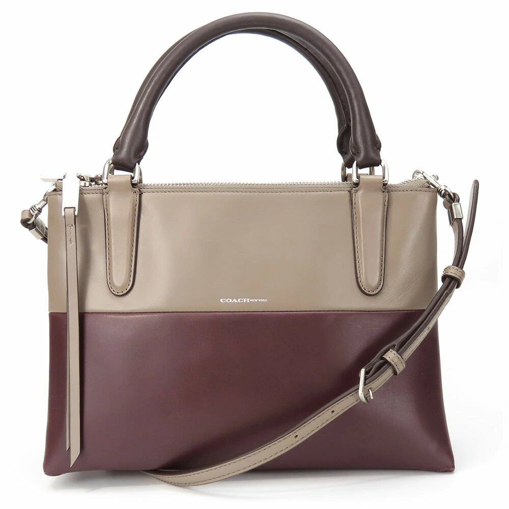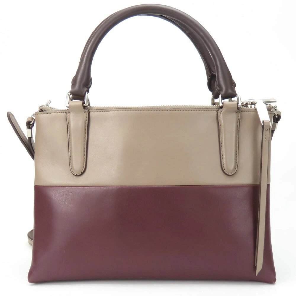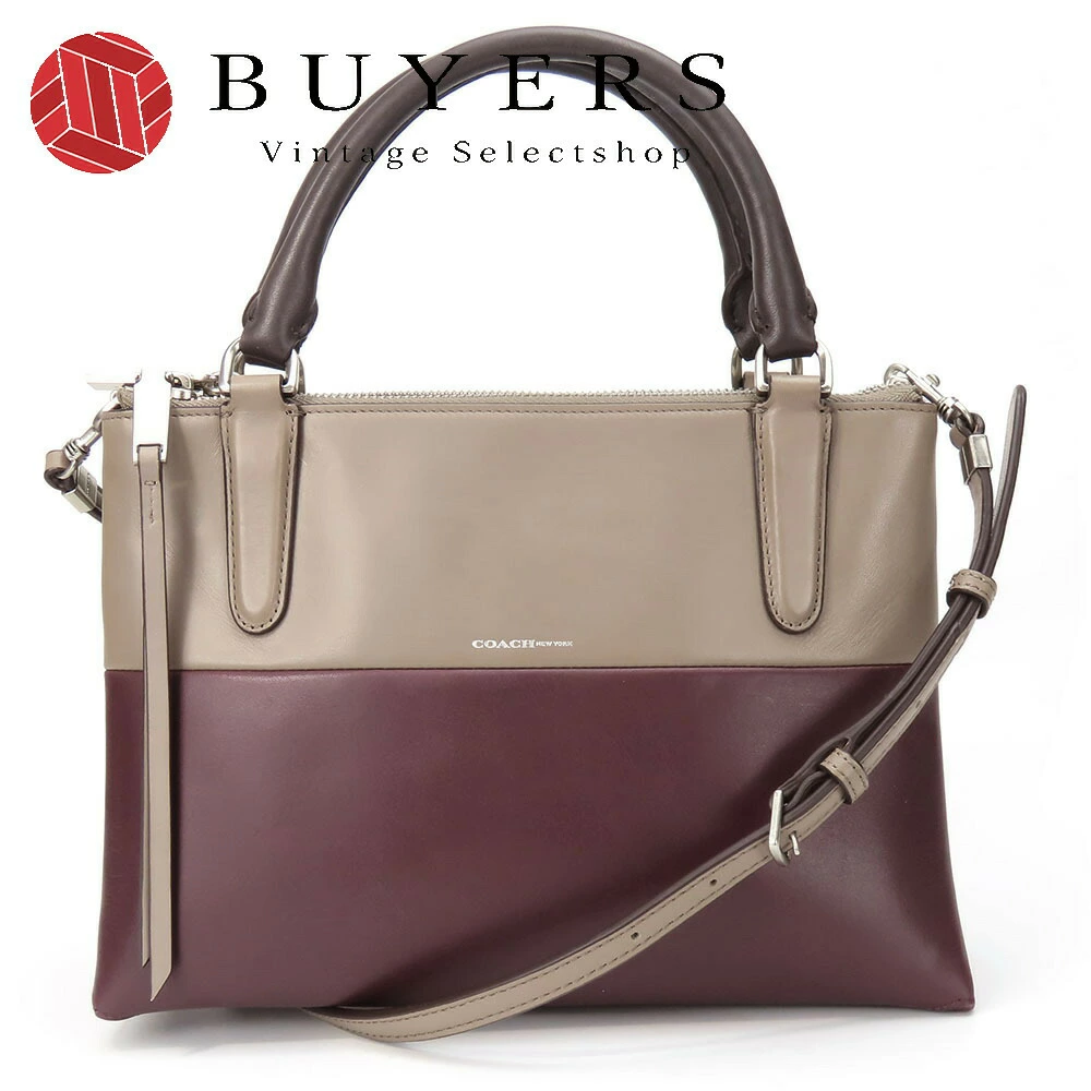 [10% OFF!! Rakuten Super Sale!!] [Pre-owned] Coach Mini Borro Shoulder Bag 32503, Mocha/Bordeaux Leather with Silver Hardware, 2-Way Handbag, Two-Tone Design, Women's, COACH