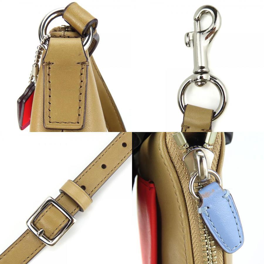 品名【中古】 コーチ ショルダーバッグ - レザー ベージュ ネオンピンク シルバー金具 斜め掛け カジュアル 普段使い レディース 女性 COACH