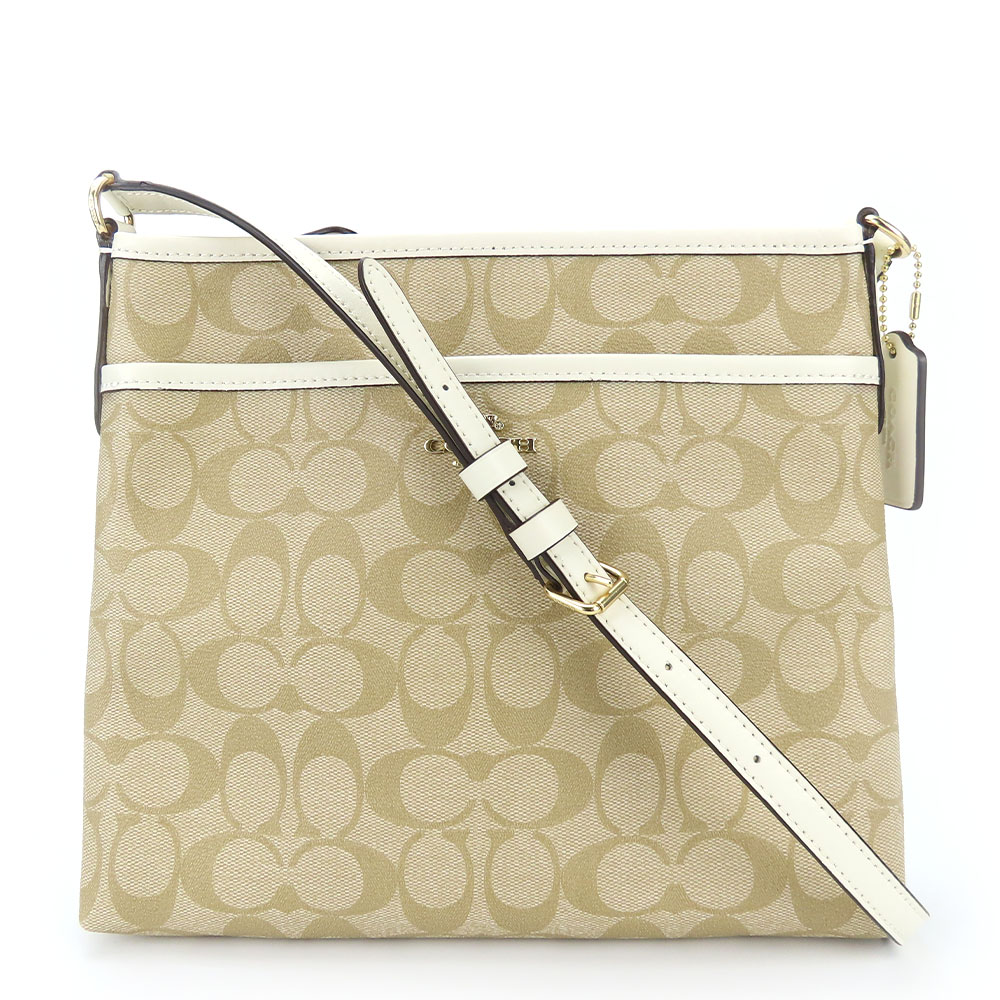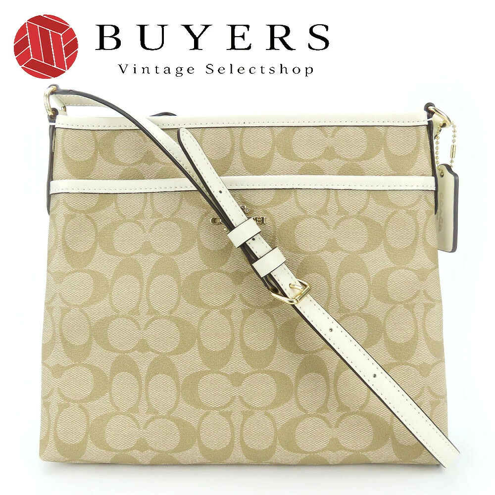 品名【中古】 コーチ ショルダーバッグ F29210 シグネチャー PVC レザー ベージュ ホワイト ゴールド金具 斜め掛け カジュアル レディース 女性 COACH