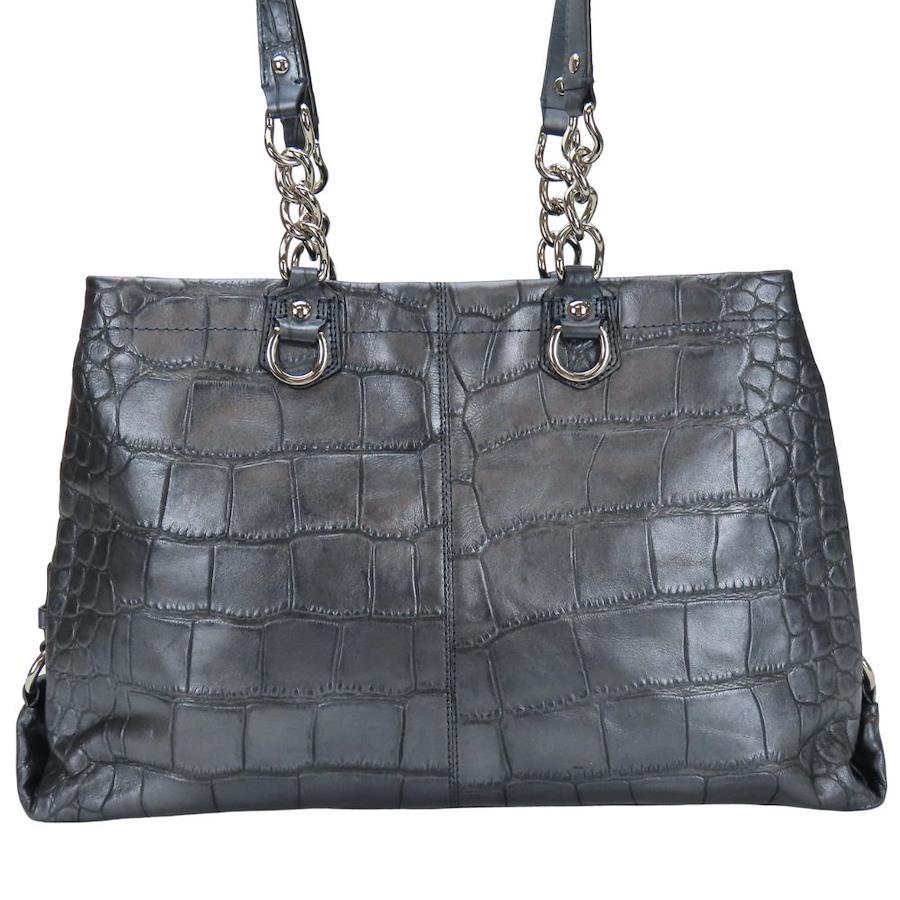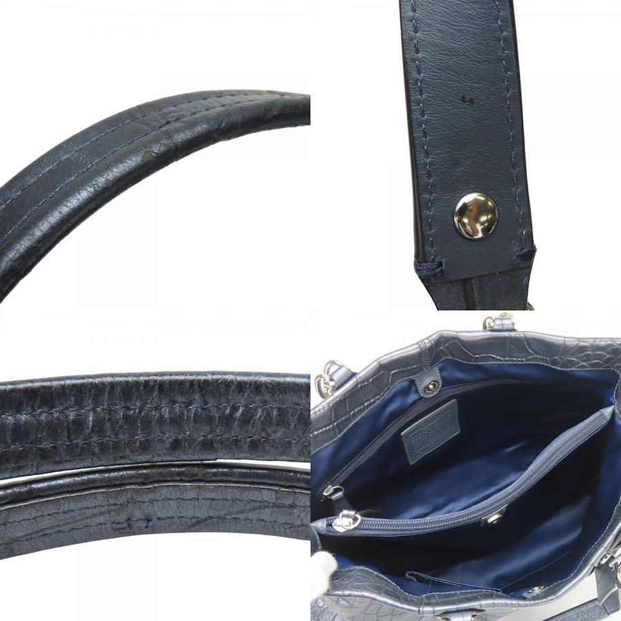 | 品名 | 【中古】 コーチ トートバッグ F17661 レザー ネイビーグレー系 メタリック シルバー金具 クロコ型押し 肩掛け レディース 女性 COACH |